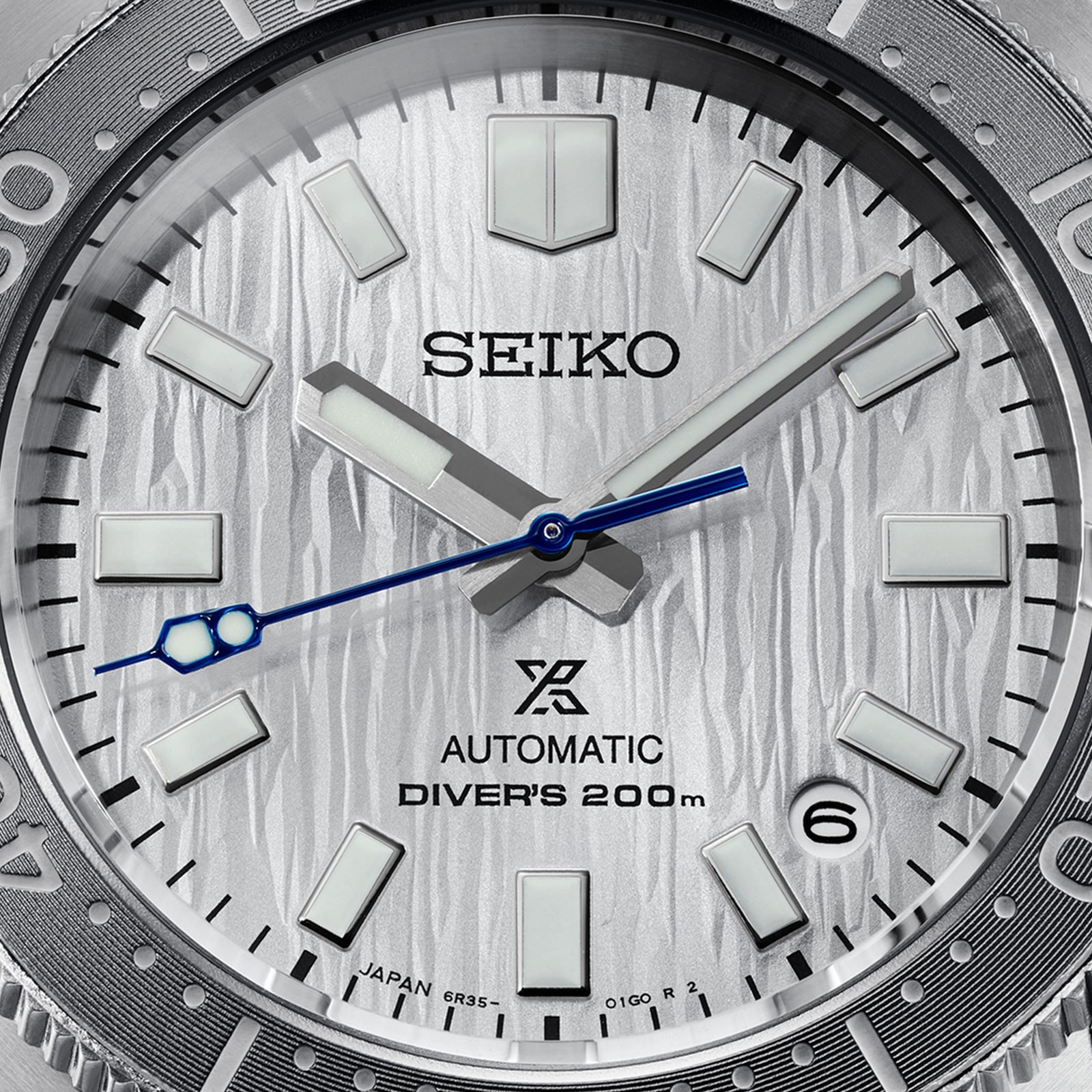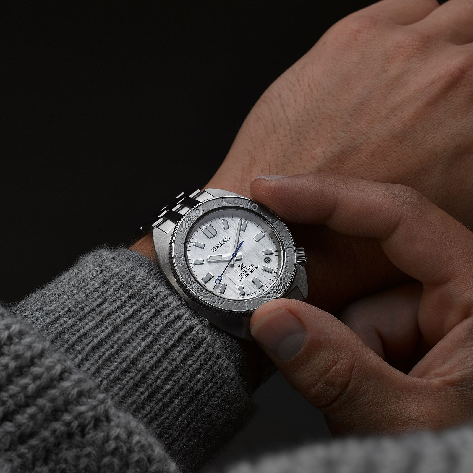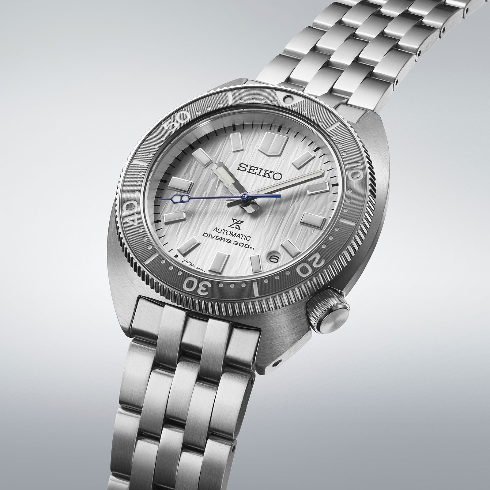 Prospex Glacier "Save The Ocean"" Turtle – 110th Anniversary Limited Edition. This limited edition timepiece commemorates 110 years since Japan’s very first wristwatch, created by Seiko in 1913: The ‘Laurel.’ This design of this watch is inspired by the ice of Antarctica, expresses the accumulation of time - linking the Antarctic history of Seiko diver's watches with the time it takes for a glacier to form into its beautiful structure. Its three-dimensional dial pattern and colour feature over 2,000 surfaces and have been designed to express the natural formations and pressure the glacier underwent during its long cooling period. This watch shape is nicknamed by Seiko fans as a ‘turtle’ - its silhouette, side view and watch case back resemble a turtle with its curved comfortable shell. To divers, sea turtles are symbols of good fortune. The Automatic in-house calibre 6R powered limited edition watch comes with both a five-row bracelet and fabric strap option - with the fabric strap being made 100% of recycled bottles. Seiko donates proceeds from Save The Ocean models to the PADI Aware Foundation's Marine Debris programme, the world's largest underwater clean-up initiative. Prospex timepieces are designed to be practical, reliable and durable within extreme or everyday environments, for experts, sports lovers and adventure seekers alike.