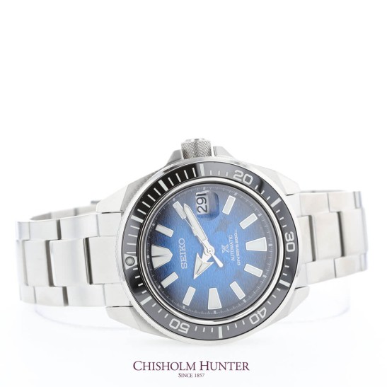 Proceeds from the Seiko 'Save the Ocean' collection supports various sea conservation organisations, including working with Fabien Coustea and the Cousteau Ocean Learning Centre to preserve and explore the world's oceans. The Seiko Prospex 'Samurai' was given its nickname by fans thanks to its angular design and hour hand which looks like it has been sliced by a samurai sword. With a ceramic black bezel and a deep blue dial featuring the endangered Manta Ray, 200m water resistance, sapphire glass and an automatic movement with 41-hour power reserve, this watch is the perfect companion for your next adventure.