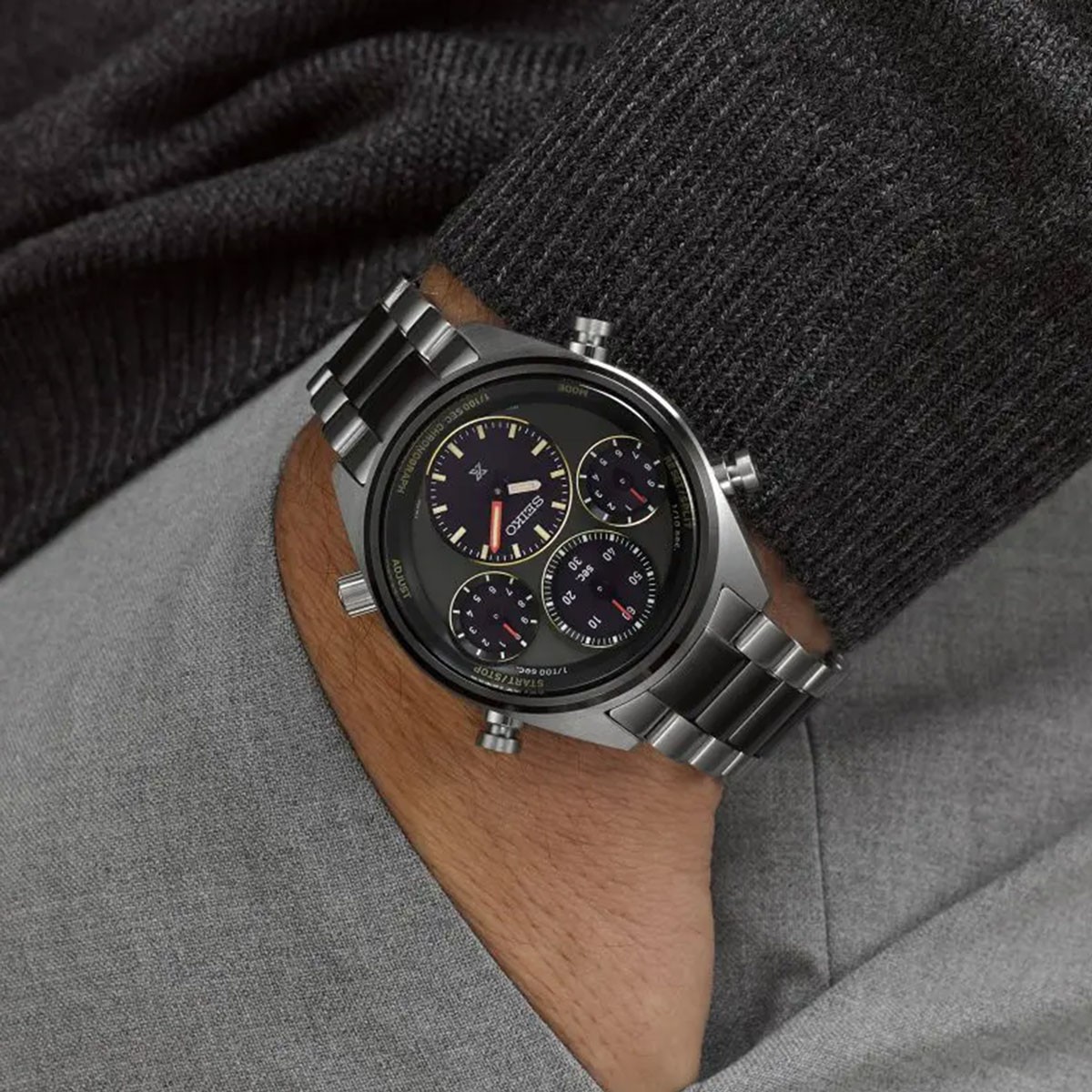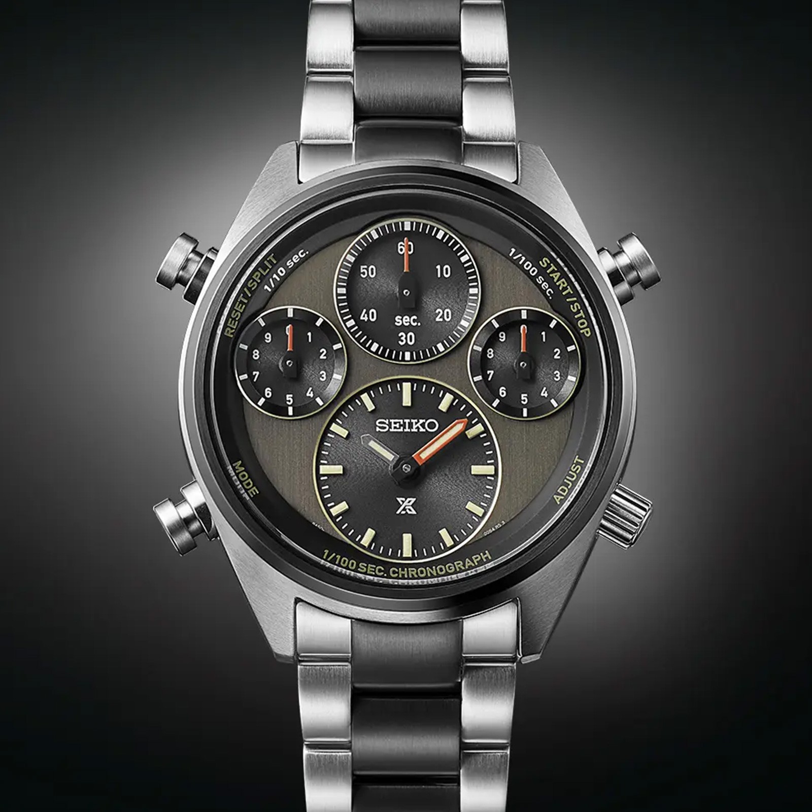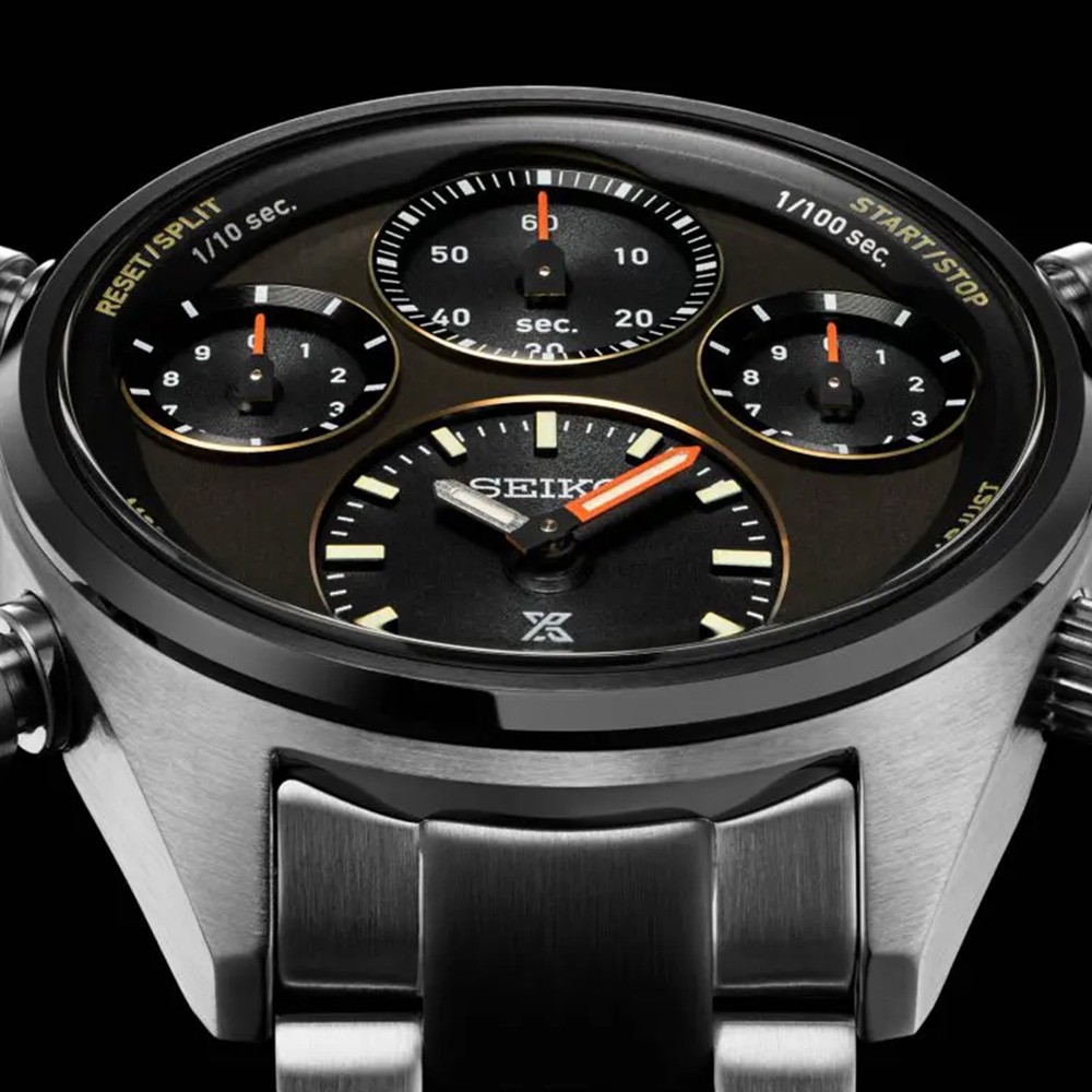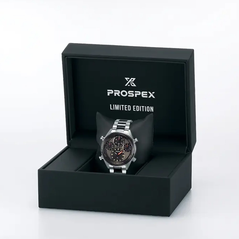 The Speedtimer Prospex watch collection represents Seiko’s professional timekeeping heritage and takes inspiration from the brand’s innovative history. This particular limited-edition design is powered by a new in-house solar chronograph calibre equipped with a stopwatch which measures time to the nearest 1/100th of a second. Its limited edition run of just 4,000 pieces worldwide commemorates the 40th anniversary of Seiko’s world-first analogue quartz chronograph, the 7A28, from 1983. Its shares the same black bezel, and khaki-grey dial colour as the first 1/100th second chronograph from 1992. It features a similar bracelet to the original, with its recognisable black strip through the centre. Becoming official timekeeper for Tokyo’s 1964 Olympics was a turning point in Seiko’s history when the brand began making precisely accurate professional sports timing instruments, with no prior experience. This legacy continues today as Seiko is the IAAF Official Timekeeper since 1985, supplying timing and measurement services to more than 180 World Athletics events in every corner of the globe. The Black subdials and khaki coloured dial of this particular timepiece achieve visibility and legibility due to its separate indicators for time and chronograph functions. Conveniently solar-powered; the watch charges from both natural and electric light. The hammer-shaped button allows for easier operability of the stopwatch function. This model is powered by the in-house built Solar chronograph calibre 8A50 that allows measurement to the nearest one-hundredth of a second.