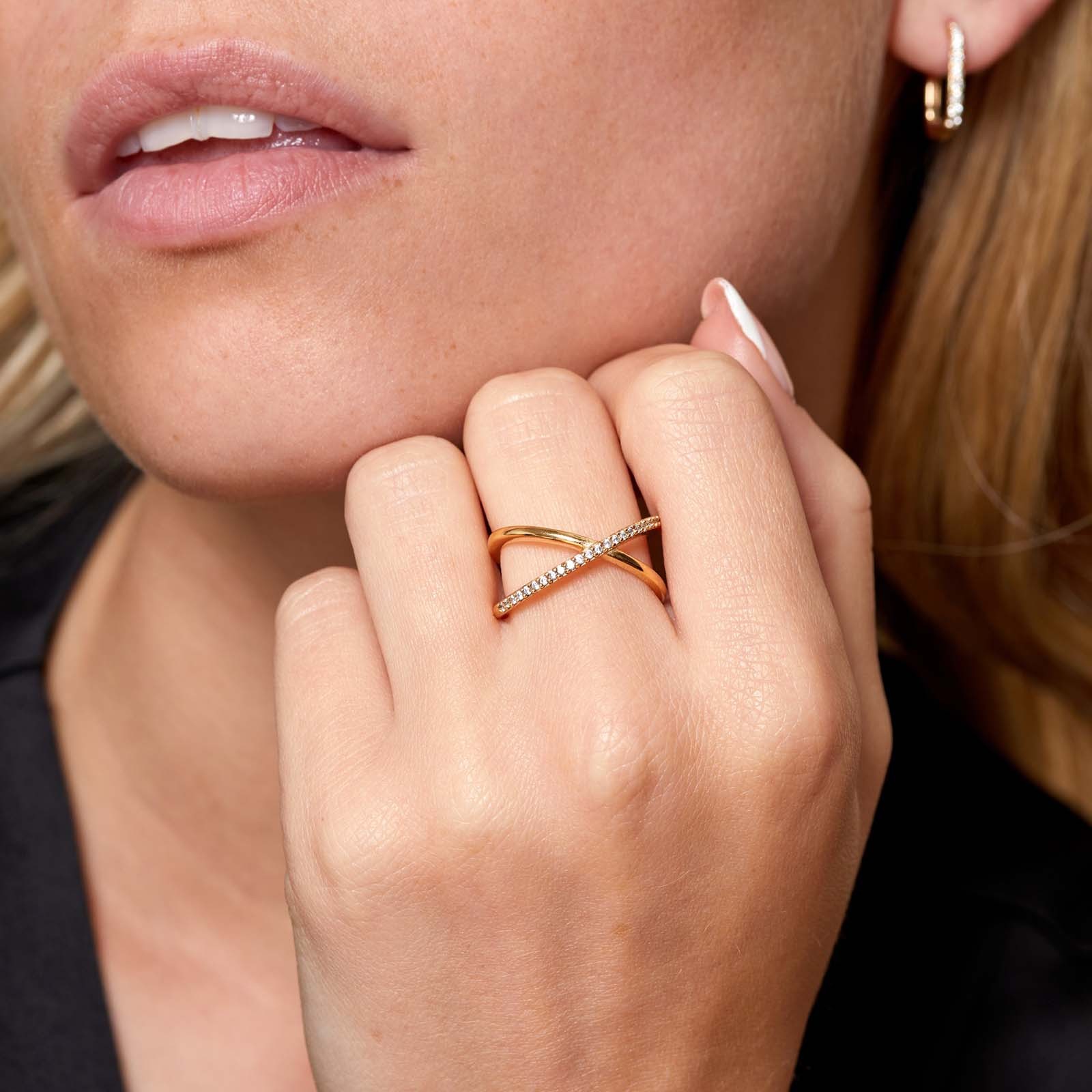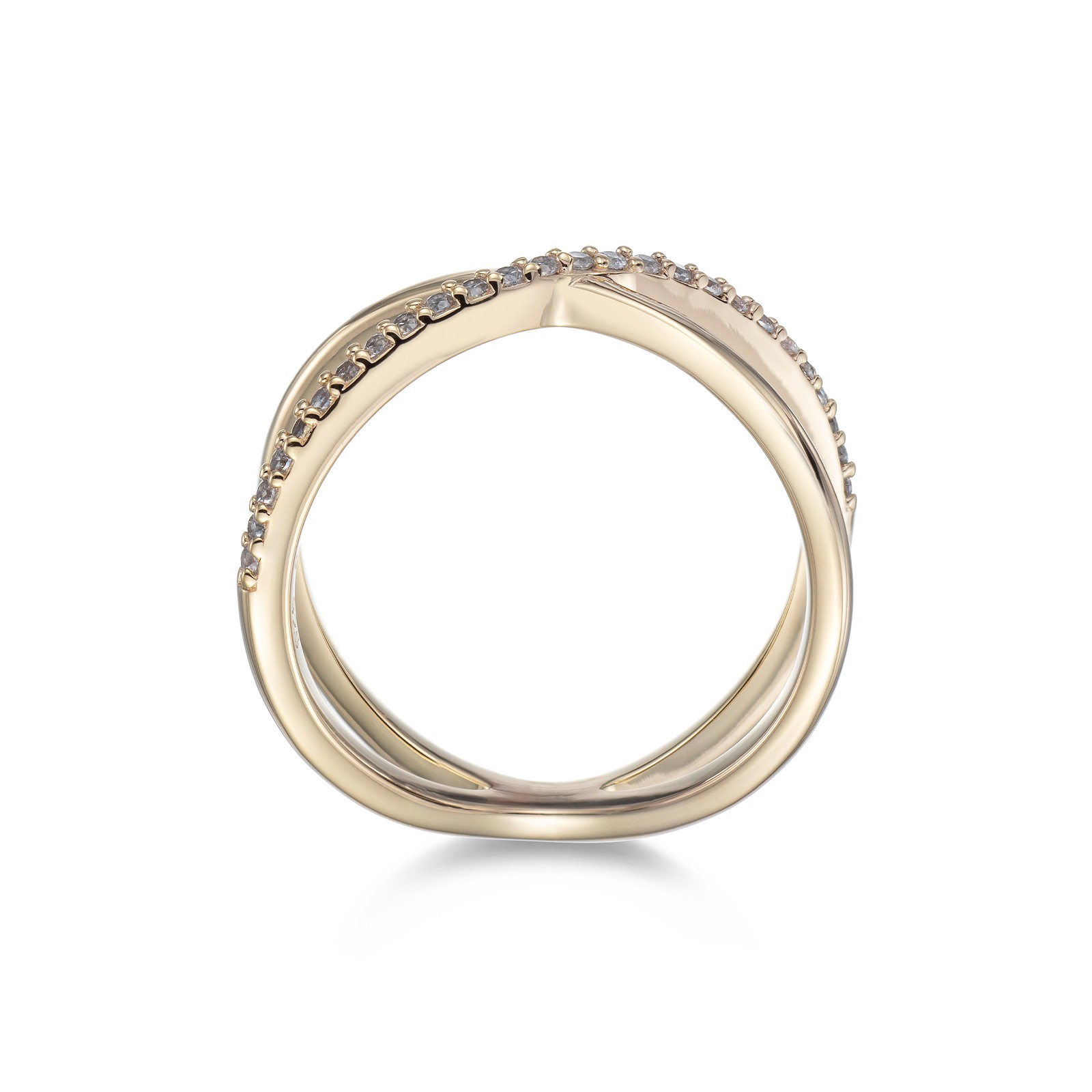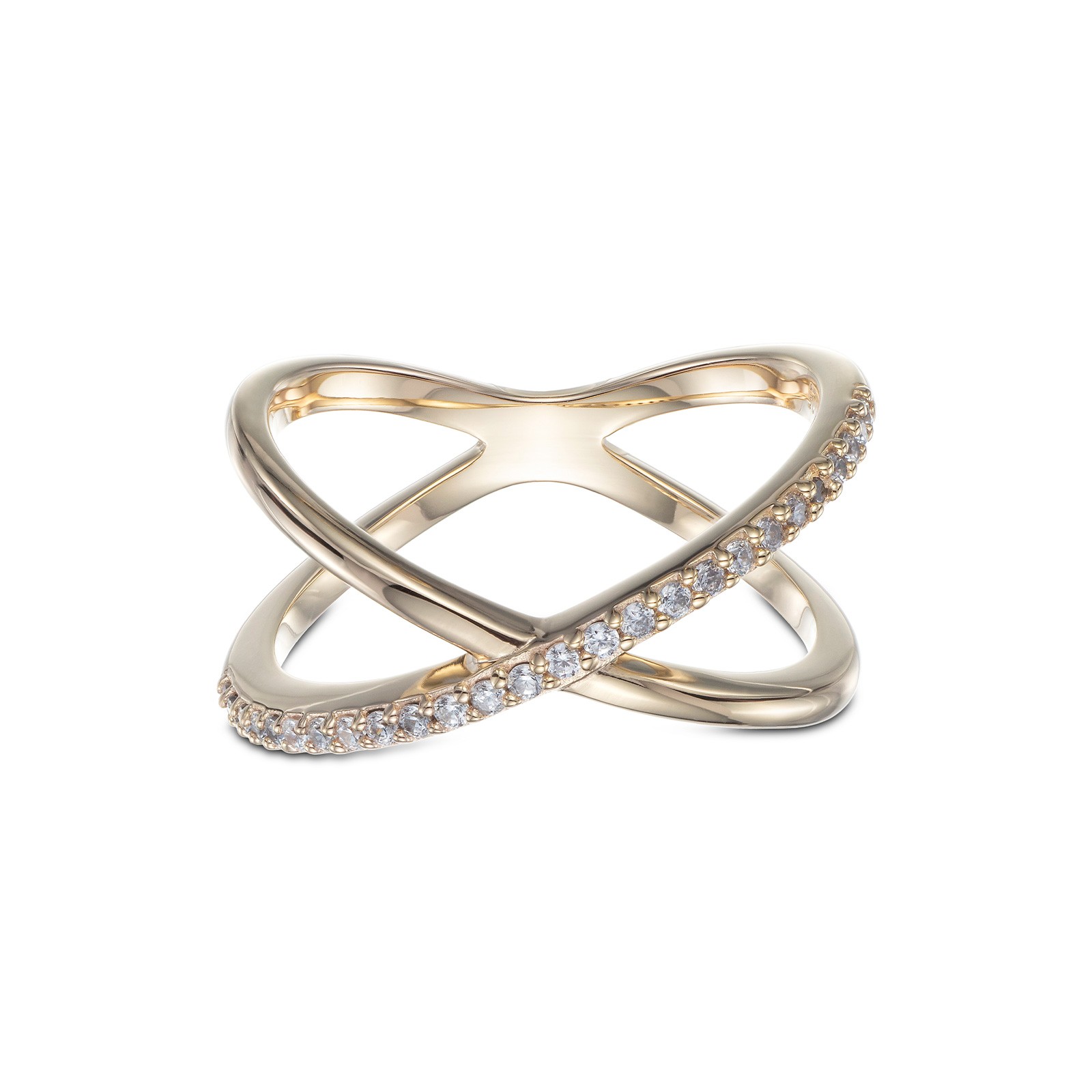 Yellow Gold Plated Cubic Zirconia Cross Over Ring