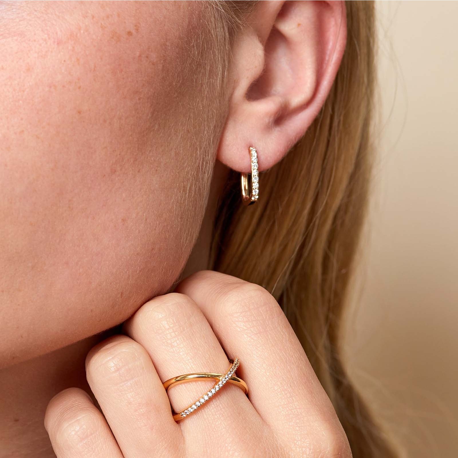 Add a touch of glamour to your outfit with this Yellow Gold Plated Cubic Zirconia Cross Over Ring. One band is set holding a row of cubic zirconia, overlapping a plain yellow gold plated band. This is a gorgeous addition too any jewellery collection. Shop cubic zirconia jewellery at Chisholm Hunter today.