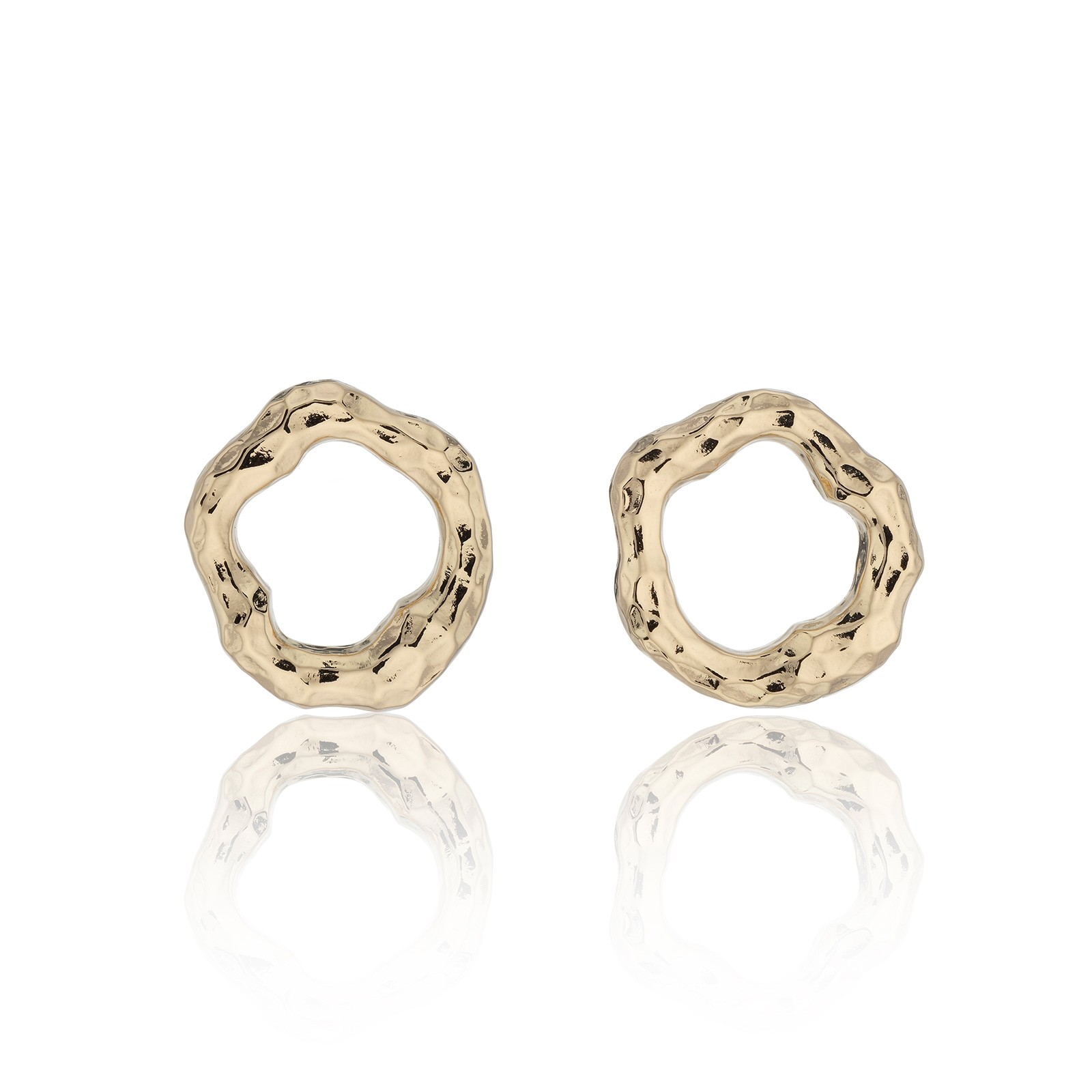 Yellow Gold Plated Hammered Circle Earrings