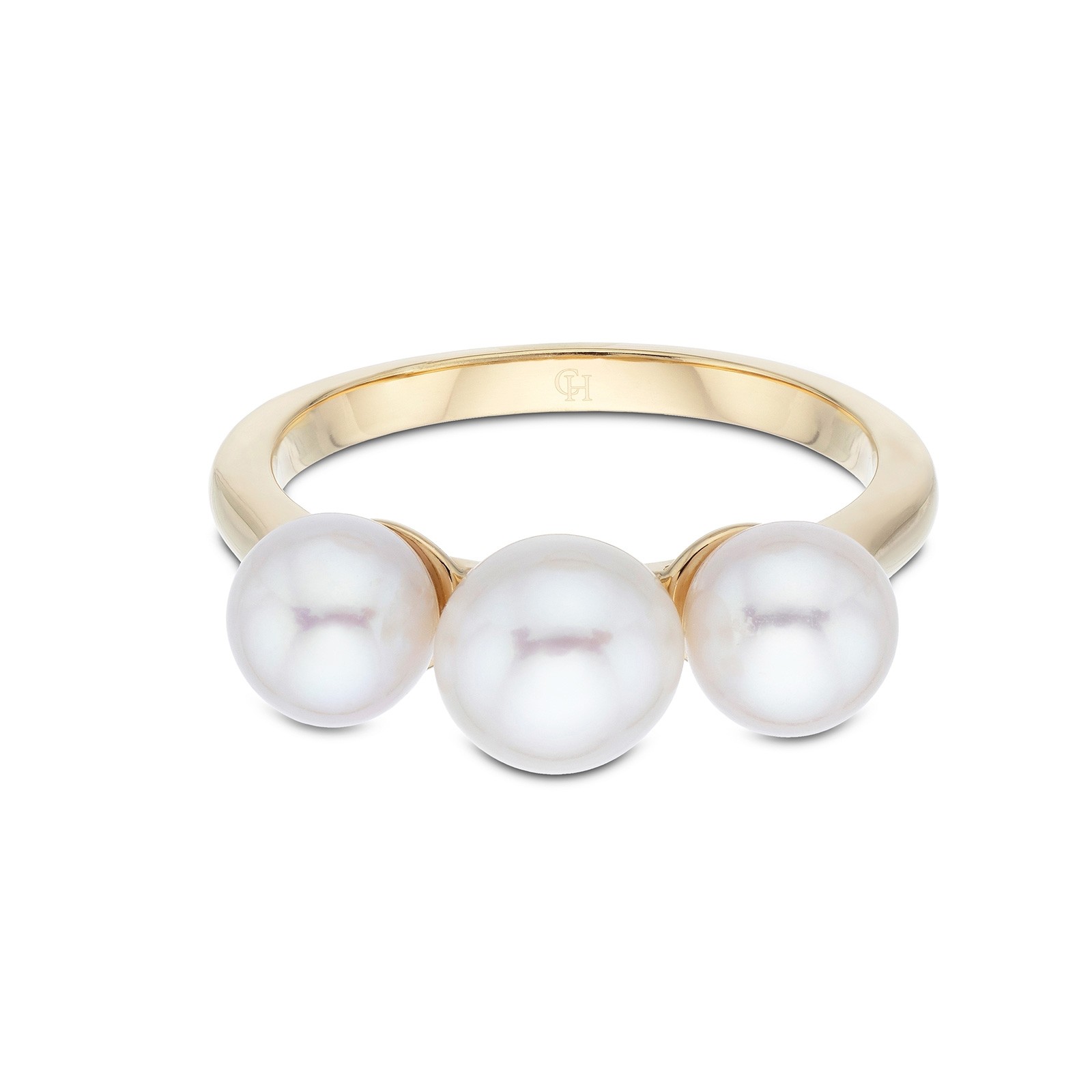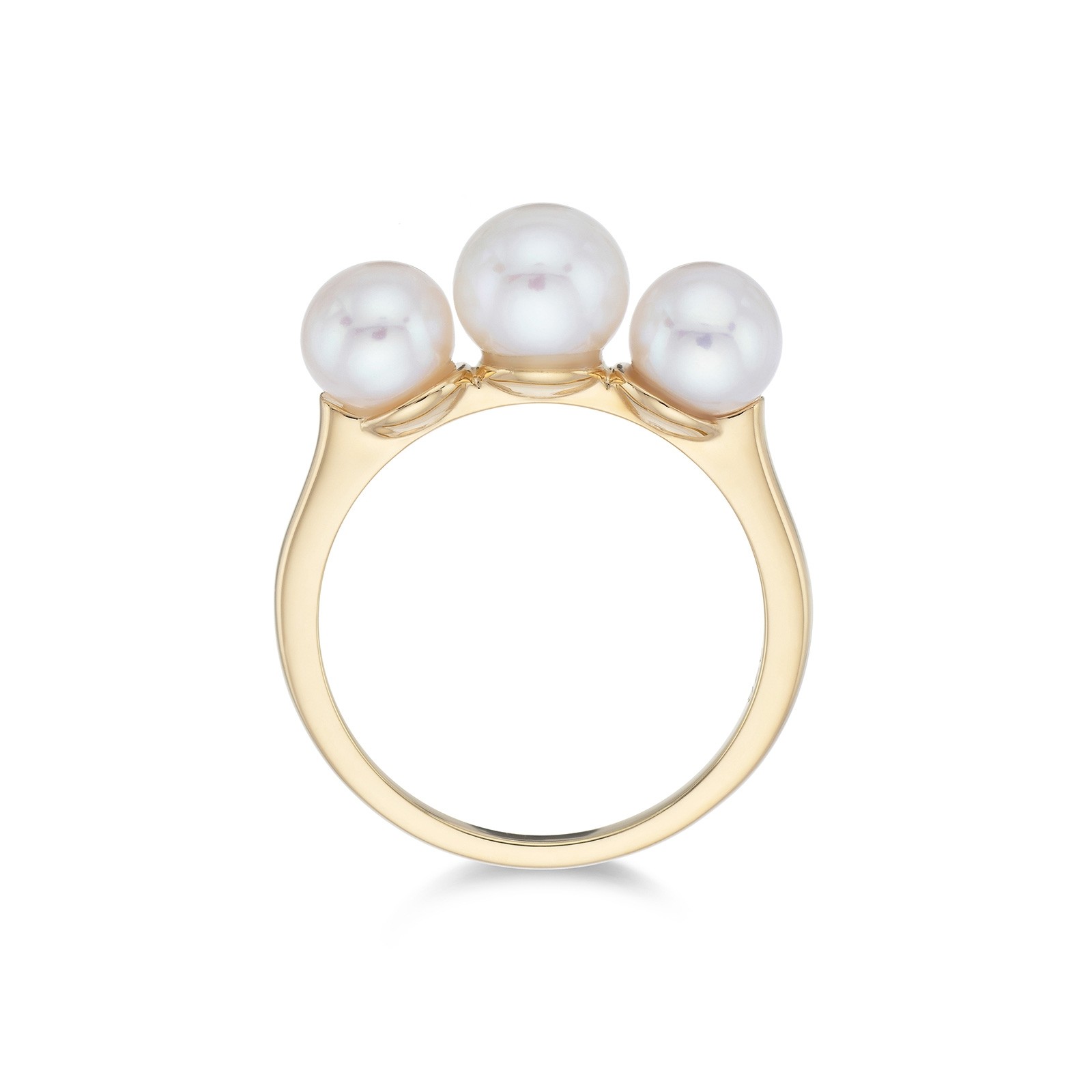 Renowned for having a timeless, classic style, this stunning yellow gold plated triple pearl ring has a contemporary aesthetic- the perfect addition to your jewellery box. The contrast between the yellow gold plated band and the lustre of the pearls creates a bold fashion statement that will add elegance to any outfit.