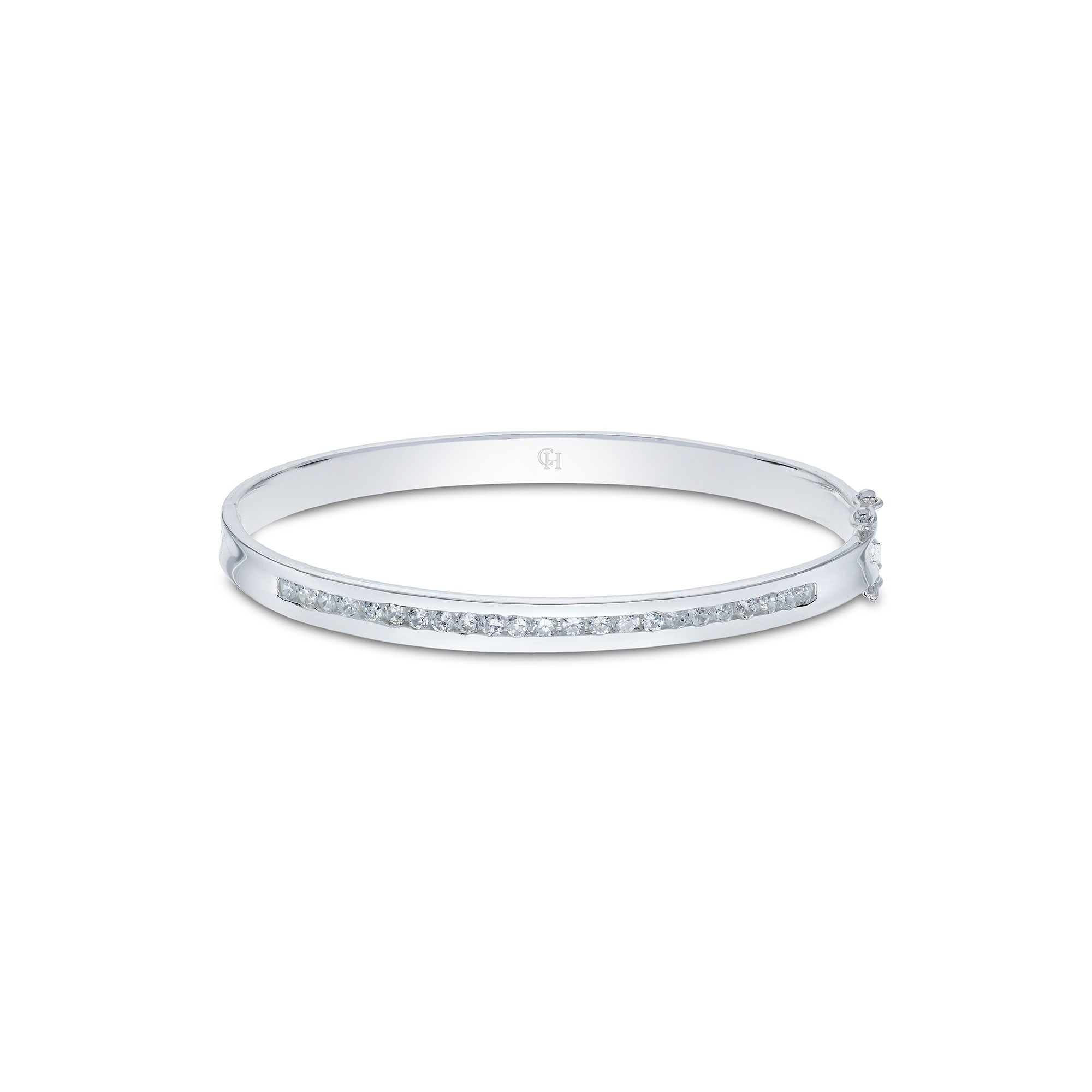 A minimalistic yet feminine design and a must have in any jewellery box. This silver bangle is decorated with a row of cubic zirconia stones which will sparkle and shine when caught in the light.