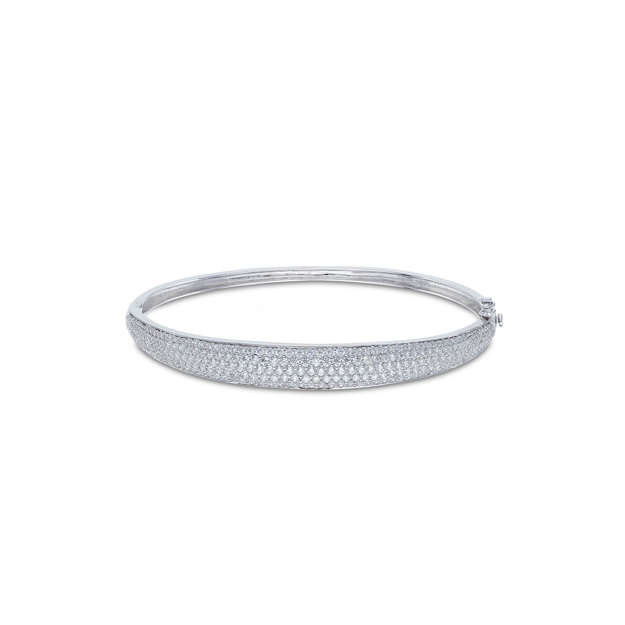 This silver bangle is a classic and feminine deisgn and is sure to be a key staple in any jewellery box. Adorned with clusters of cubic zirconia stones this will shine and add a touch of sparkle to complete any look.