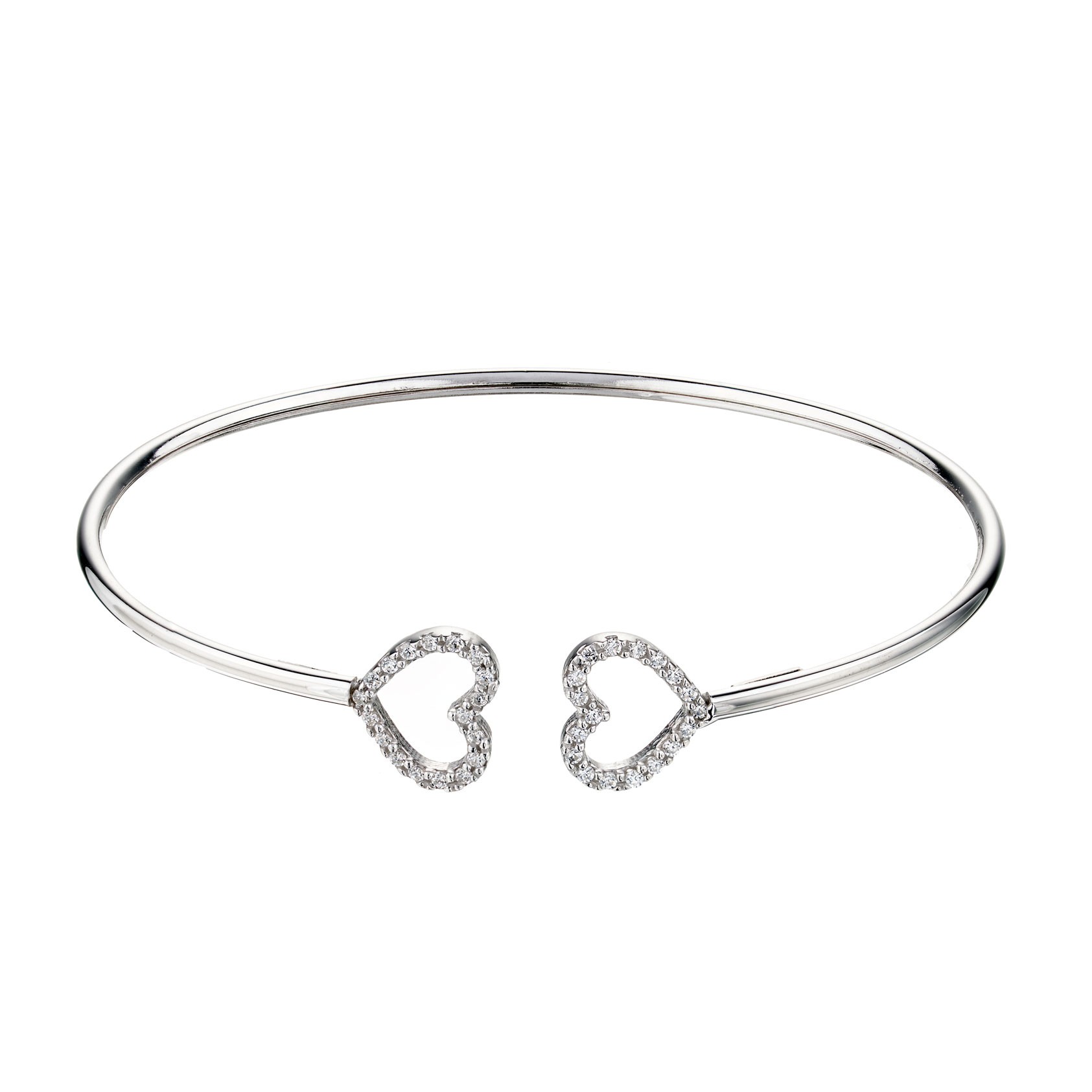 Show somone your love with this silver cubic zirconia double heart bangle. Wrapped lovingly around your wrist or theirs, take a little piece of love around with you all day.