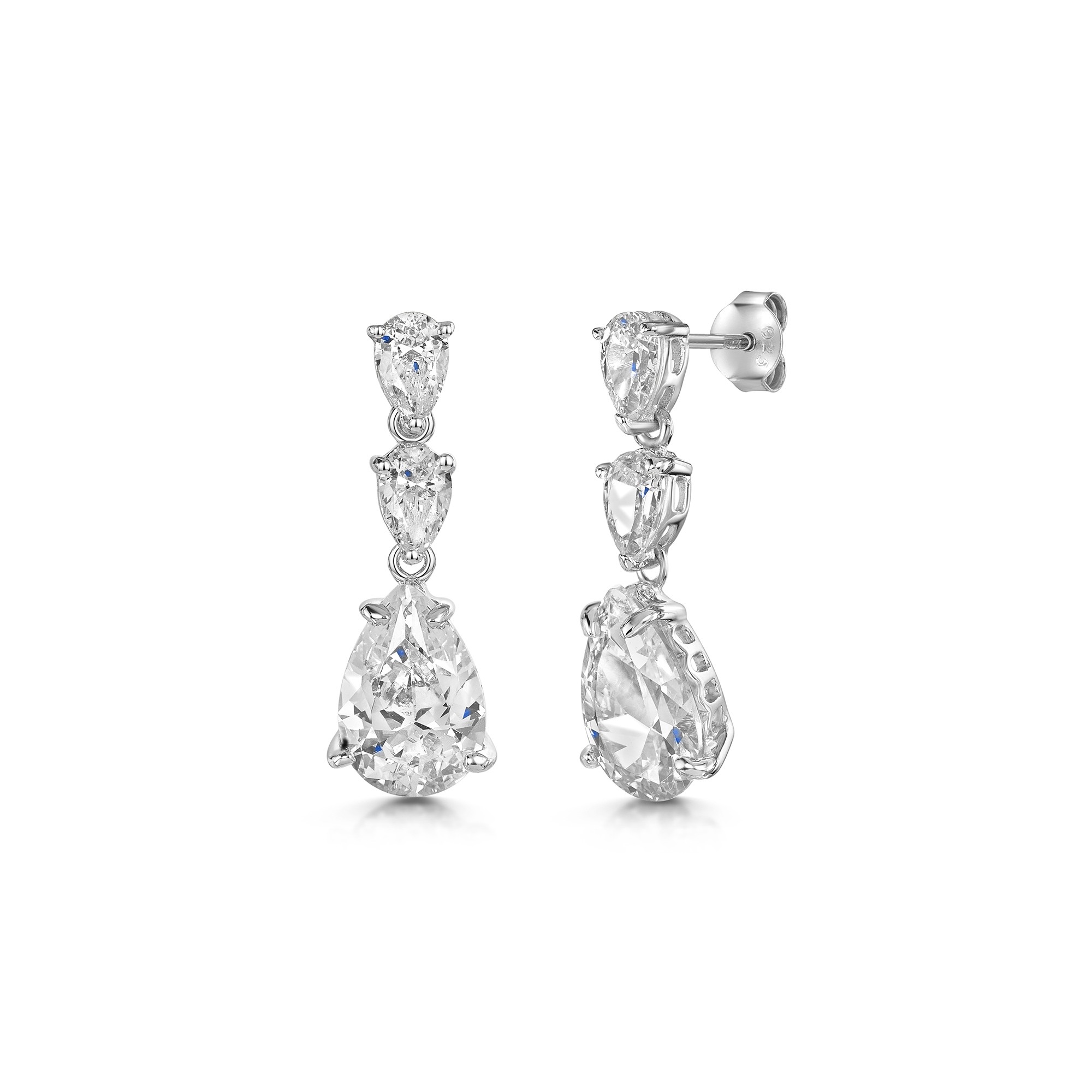 Silver Pear Cut Cubic Zirconia 3 Stone Drop Earrings