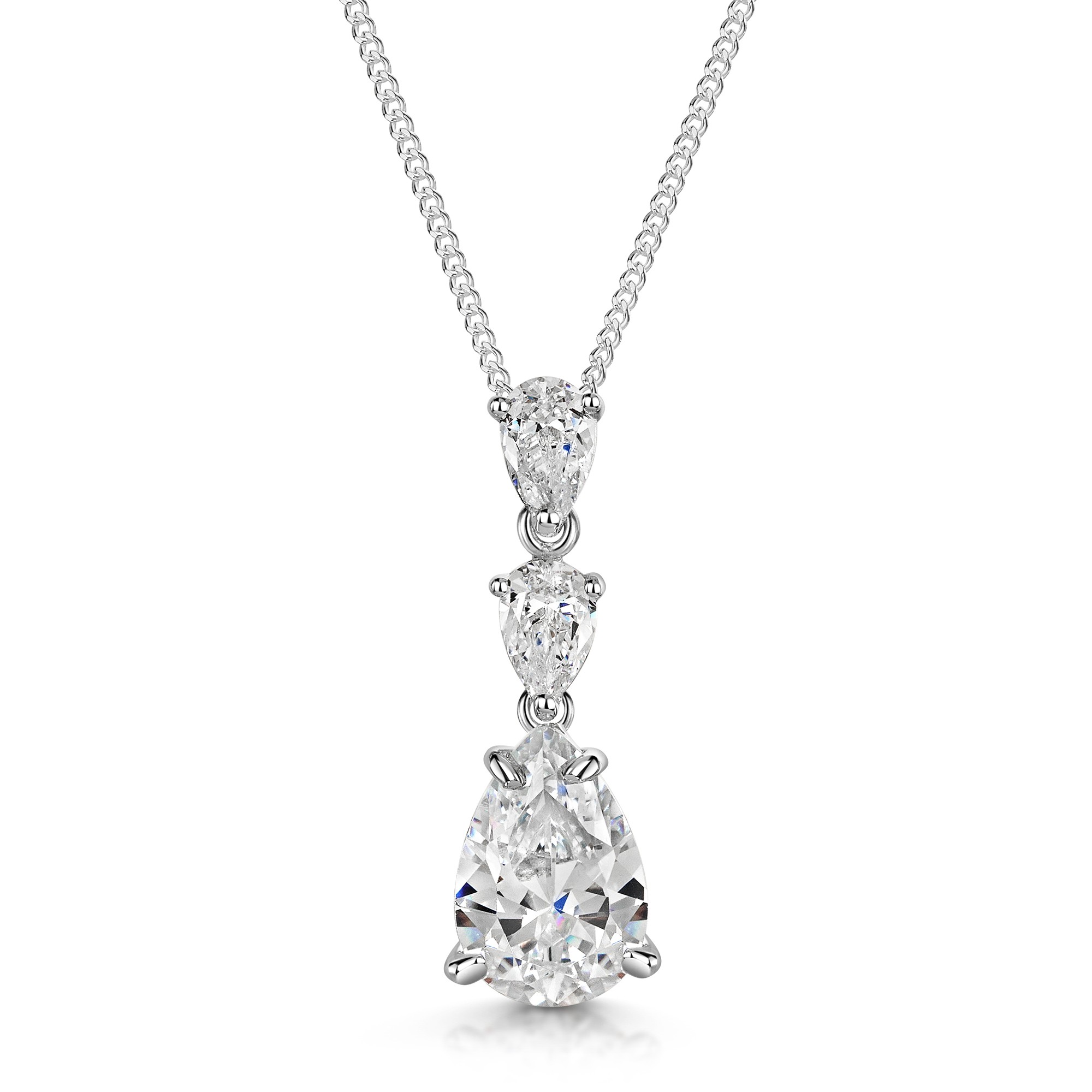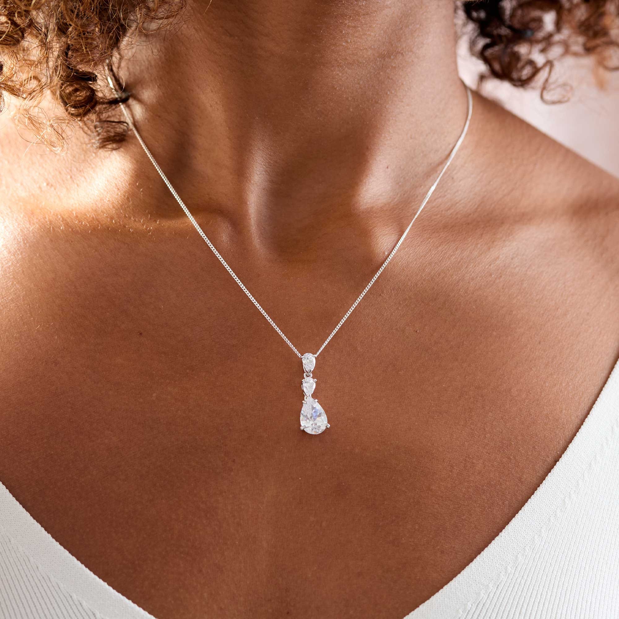 Silver Pear Cut Cubic Zirconia 3 Stone Drop Pendant