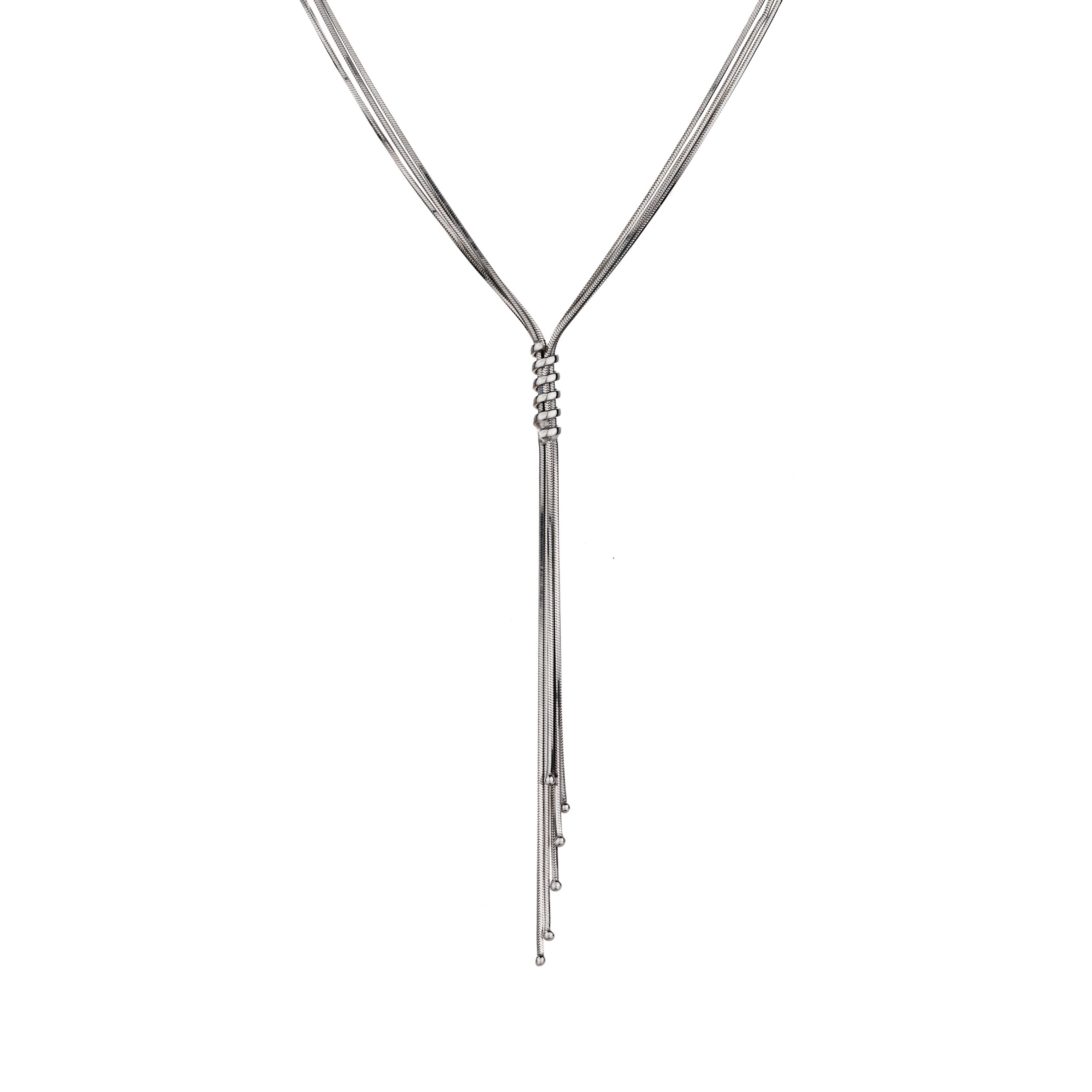 Radiate sophistication that will turn everyones heads with this silver necklet. Elegant enough to wear to any occasion, with its multi tassle design and rope design, this piece is truly unique.