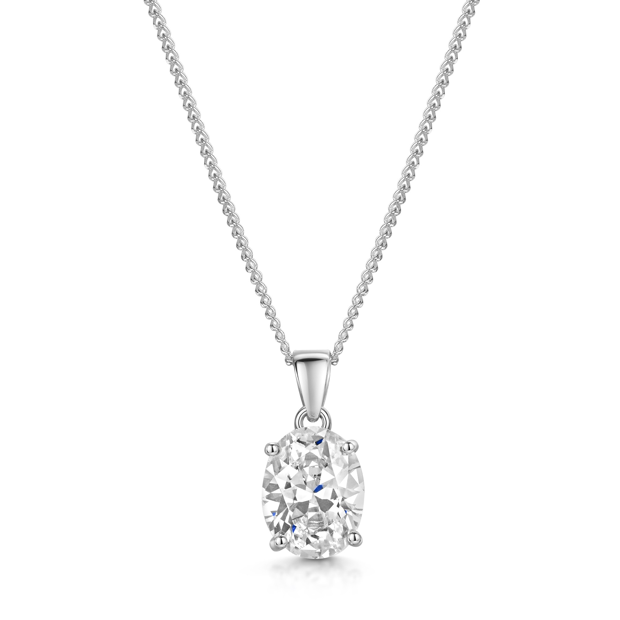 Silver Oval Cut Cubic Zirconia Solitaire Pendant