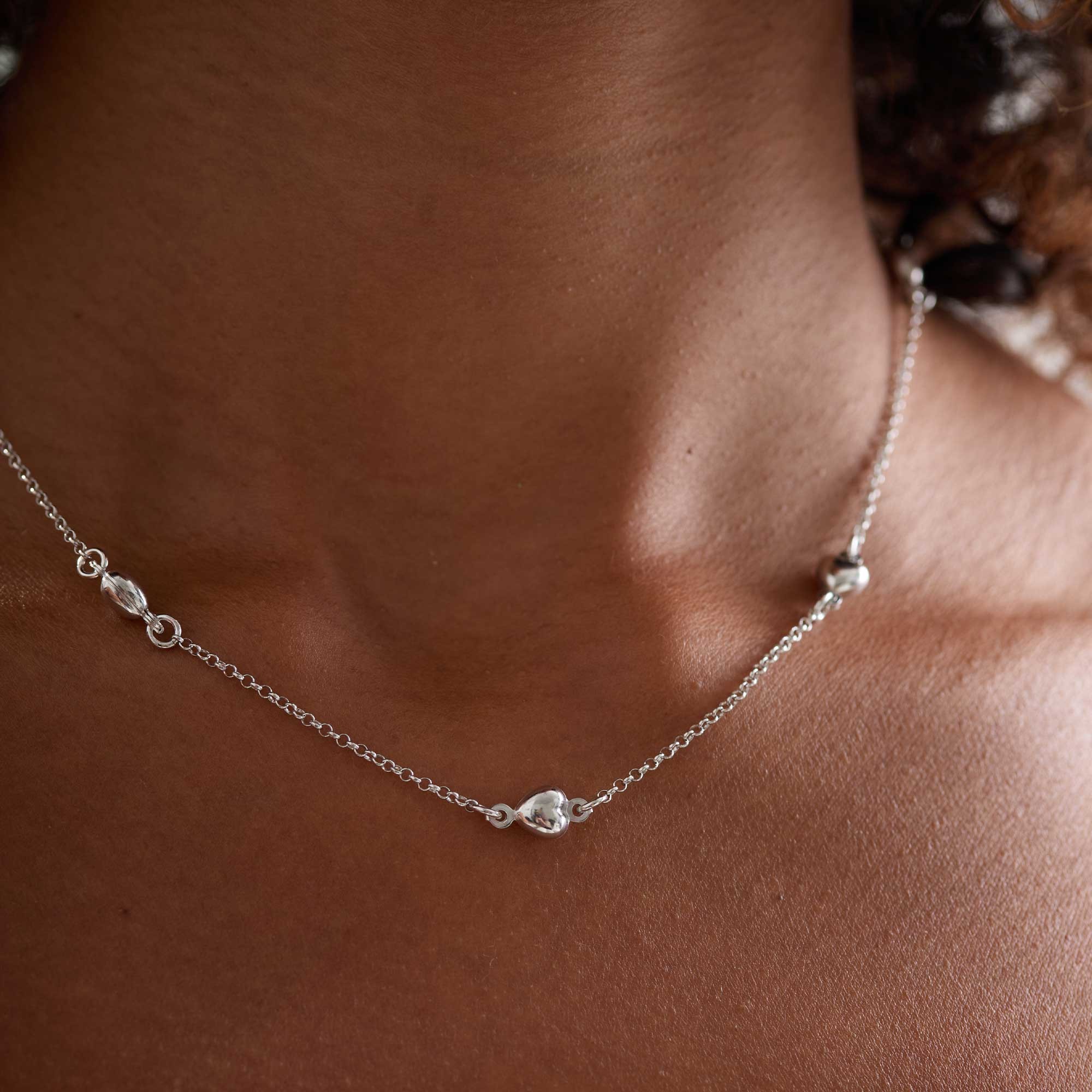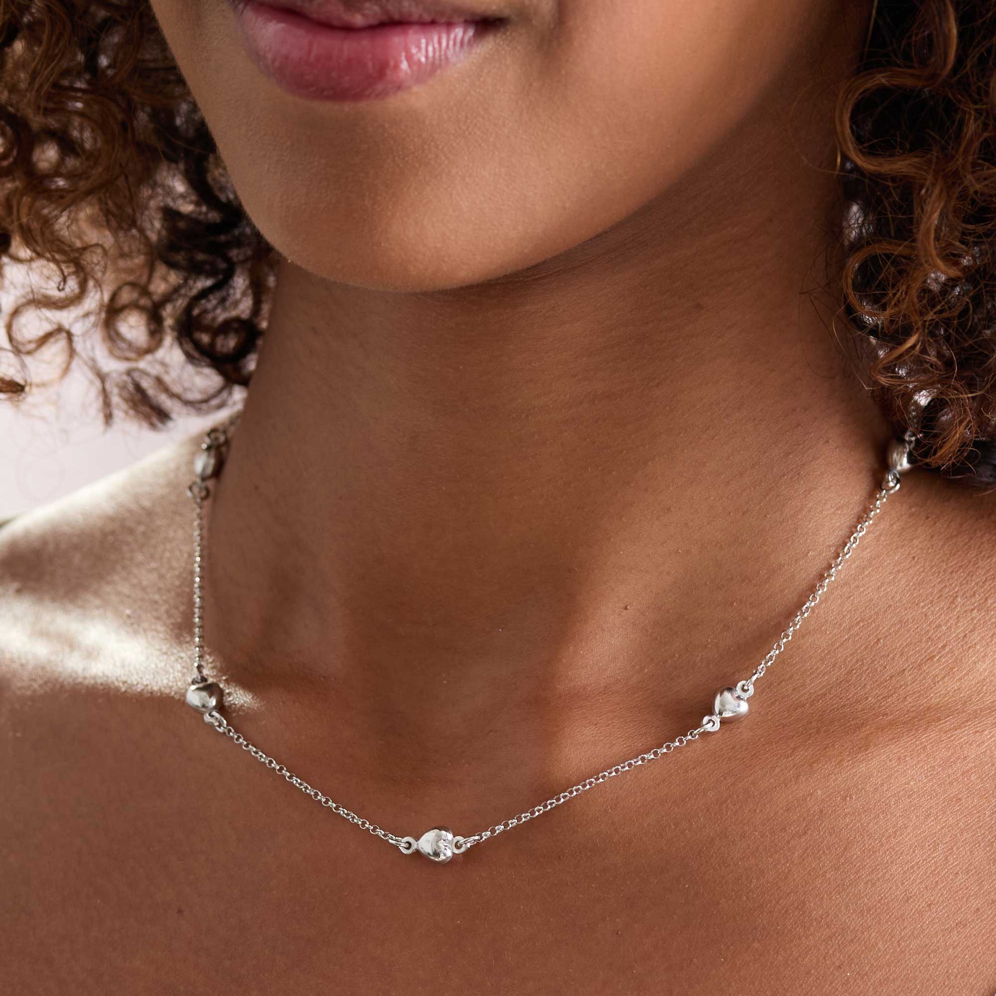 Whether worn daily or for special events, the Silver Stationed Heart Necklet symbolises love and affection, adding deeper meaning to this stunning piece.