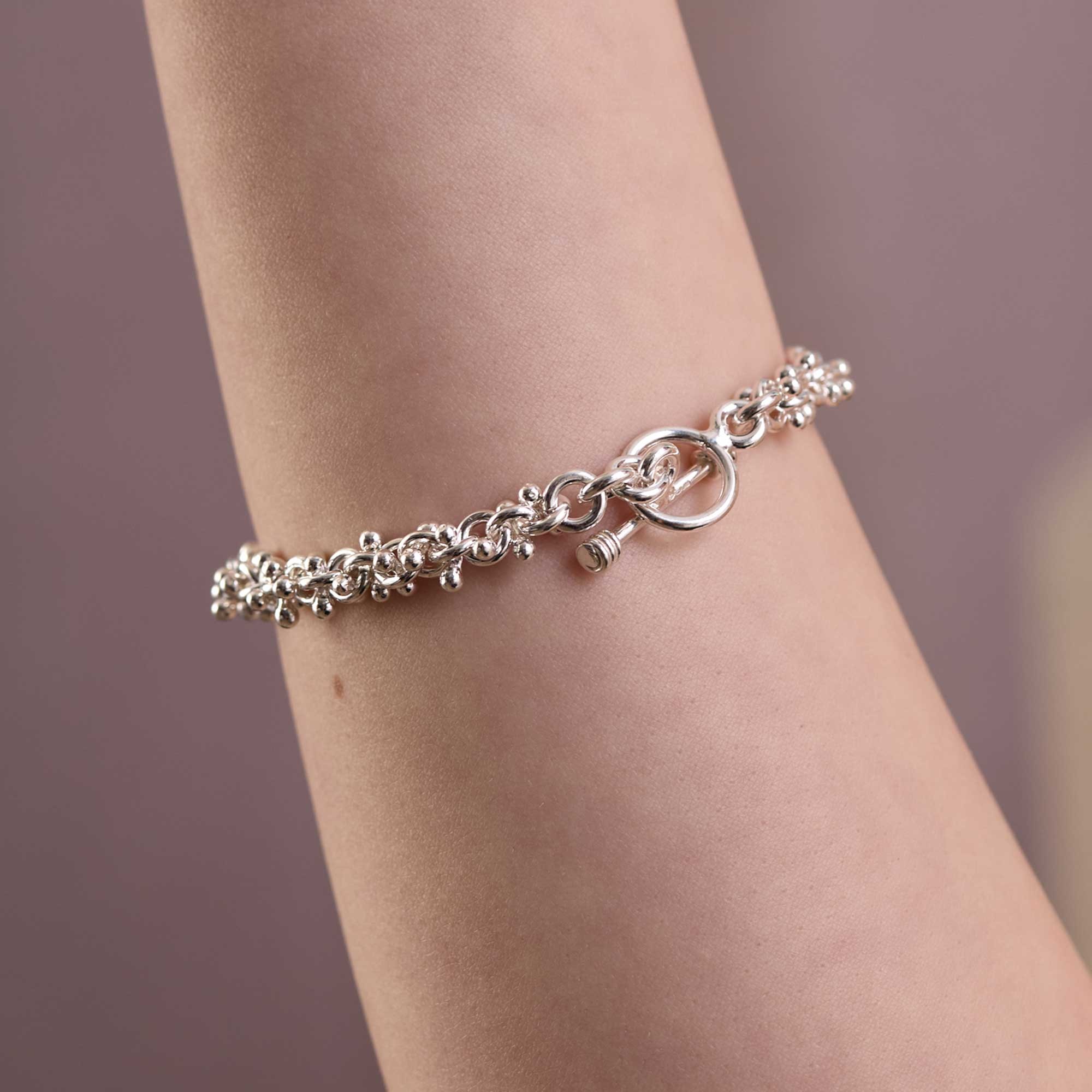 The intricate texture adds depth creating a clean, versatile look. Wear it solo for a polished finish or stack it with other silver pieces. A secure fastening keeps the bracelet in place, while the quality of the silver offers lasting wear.