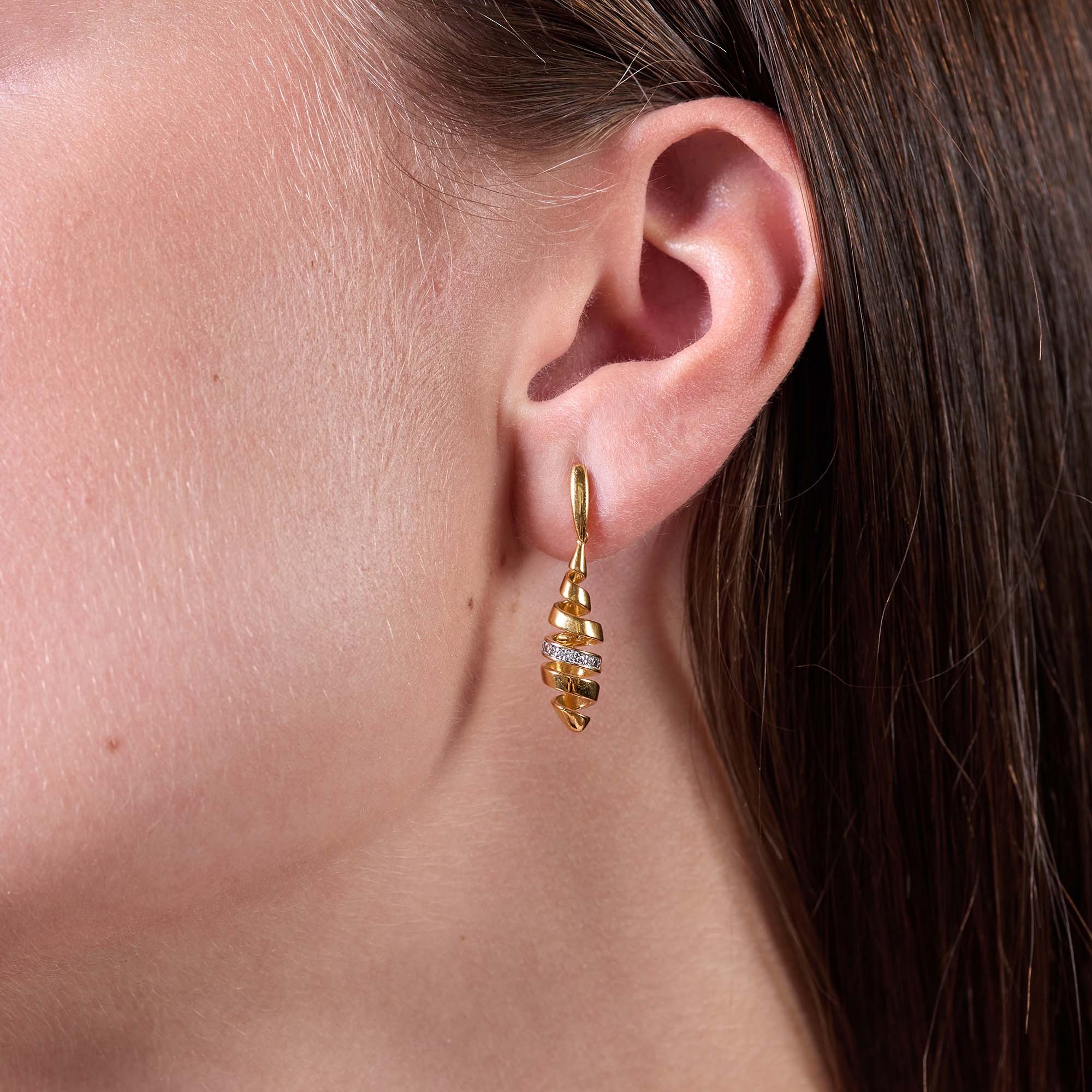 Yellow Gold Plated Cubic Zirconia Spiral Drop Earrings
