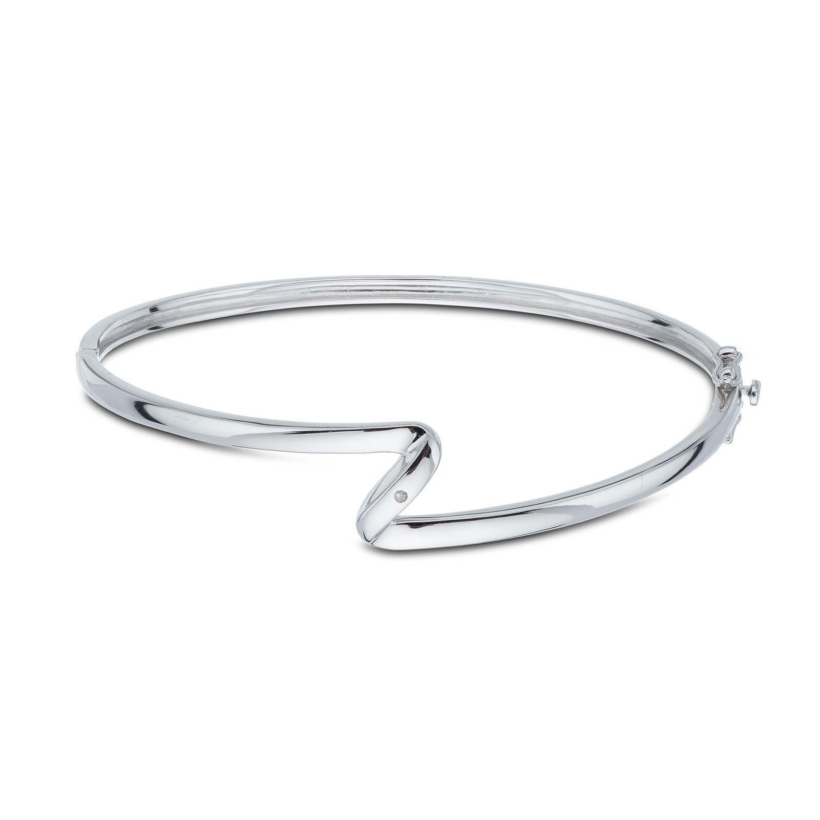 Sterling Silver 0.01ct Diamond Wave Bangle