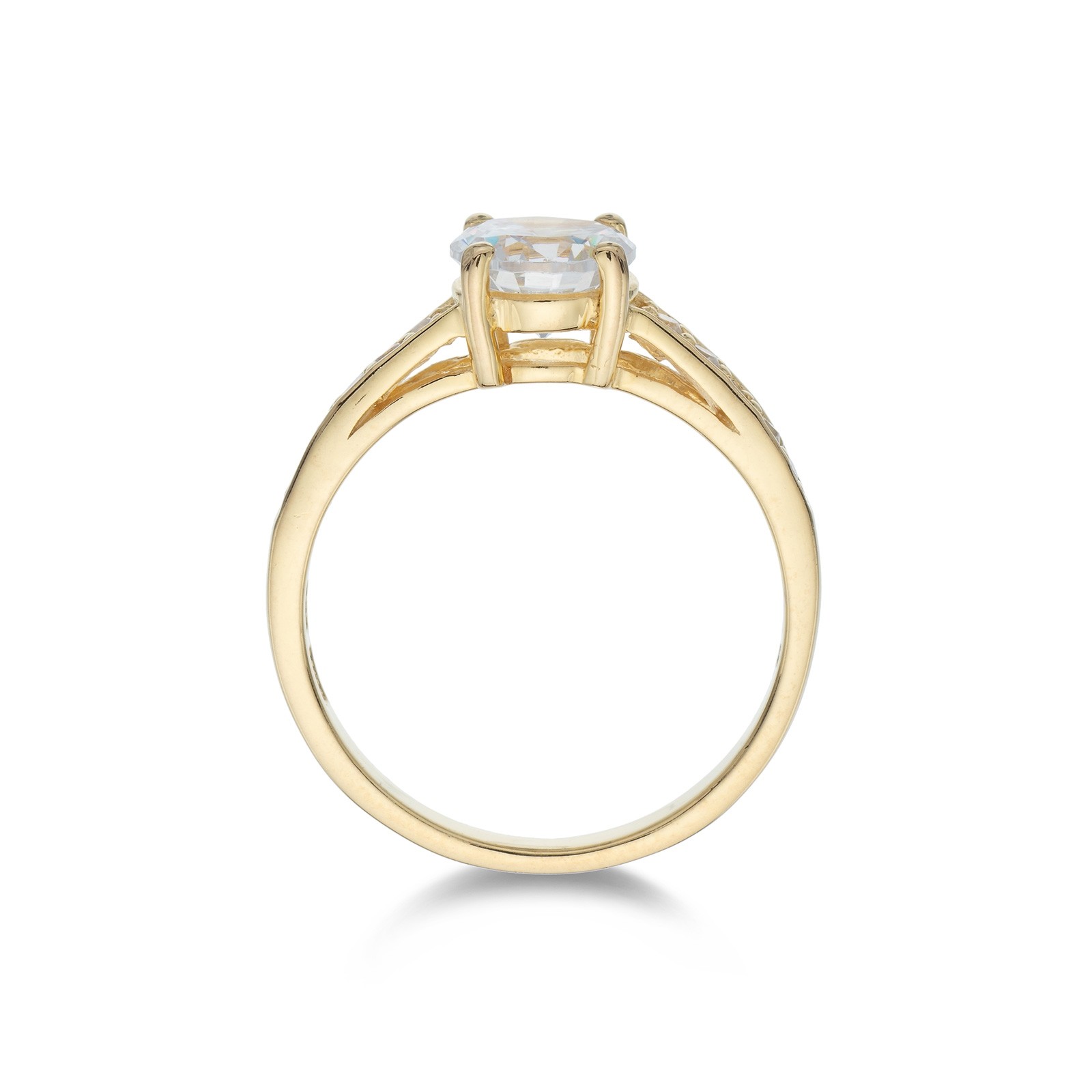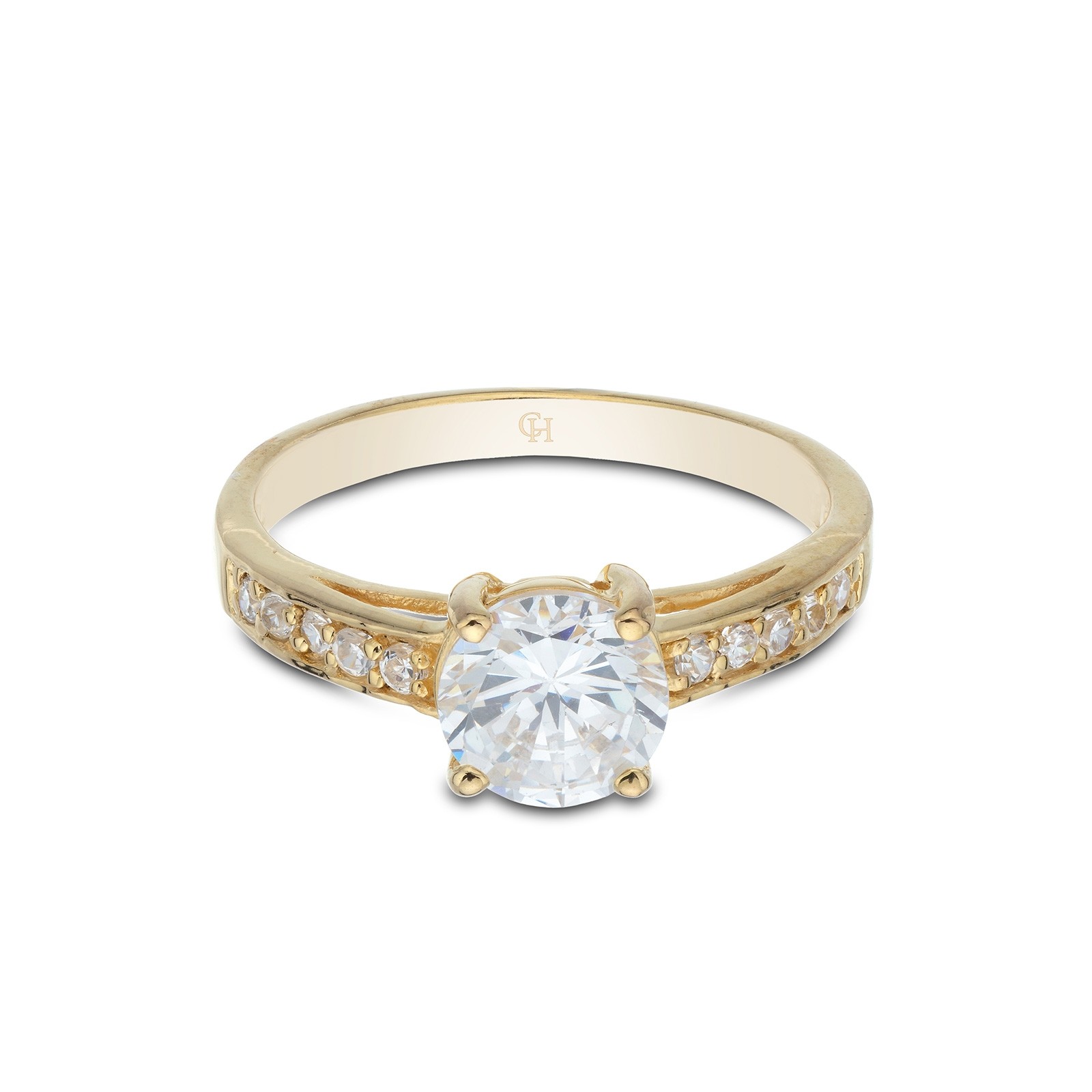 Fall in love with this romantic Sterling Silver Yellow Gold Plated Cubic Zirconia Solitaire Ring. Expertly crafted from yellow-gold plated sterling silver, this ring makes the perfect gift for your loved one. Featuring a round cubic zirconia centre stone in a four-claw setting and sparkling cubic zirconia shoulders, this ring will create a truly dazzling display of colour and light. Presented in Chisholm Hunter gift packaging.