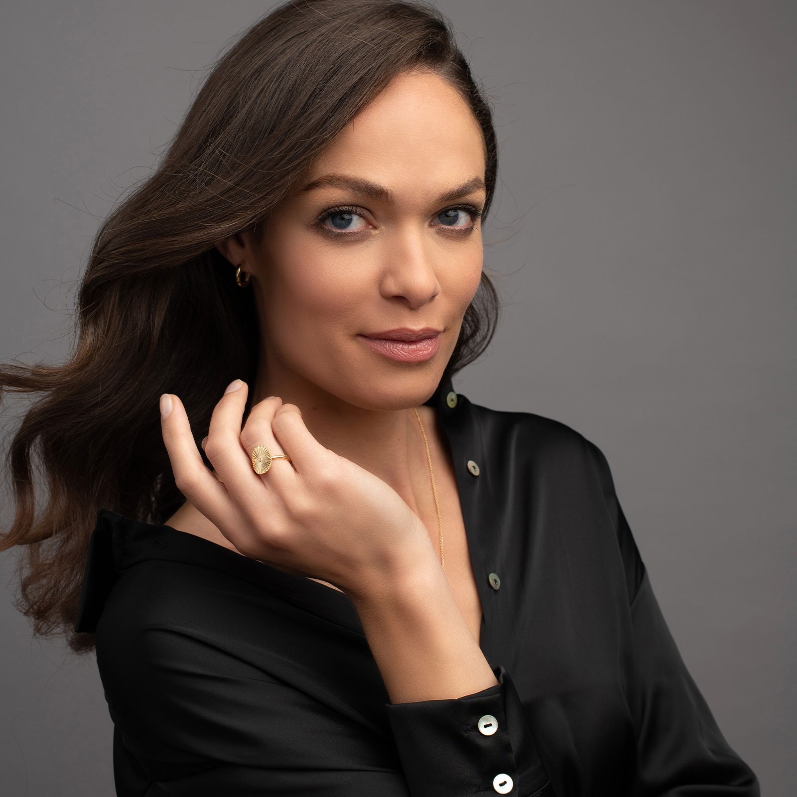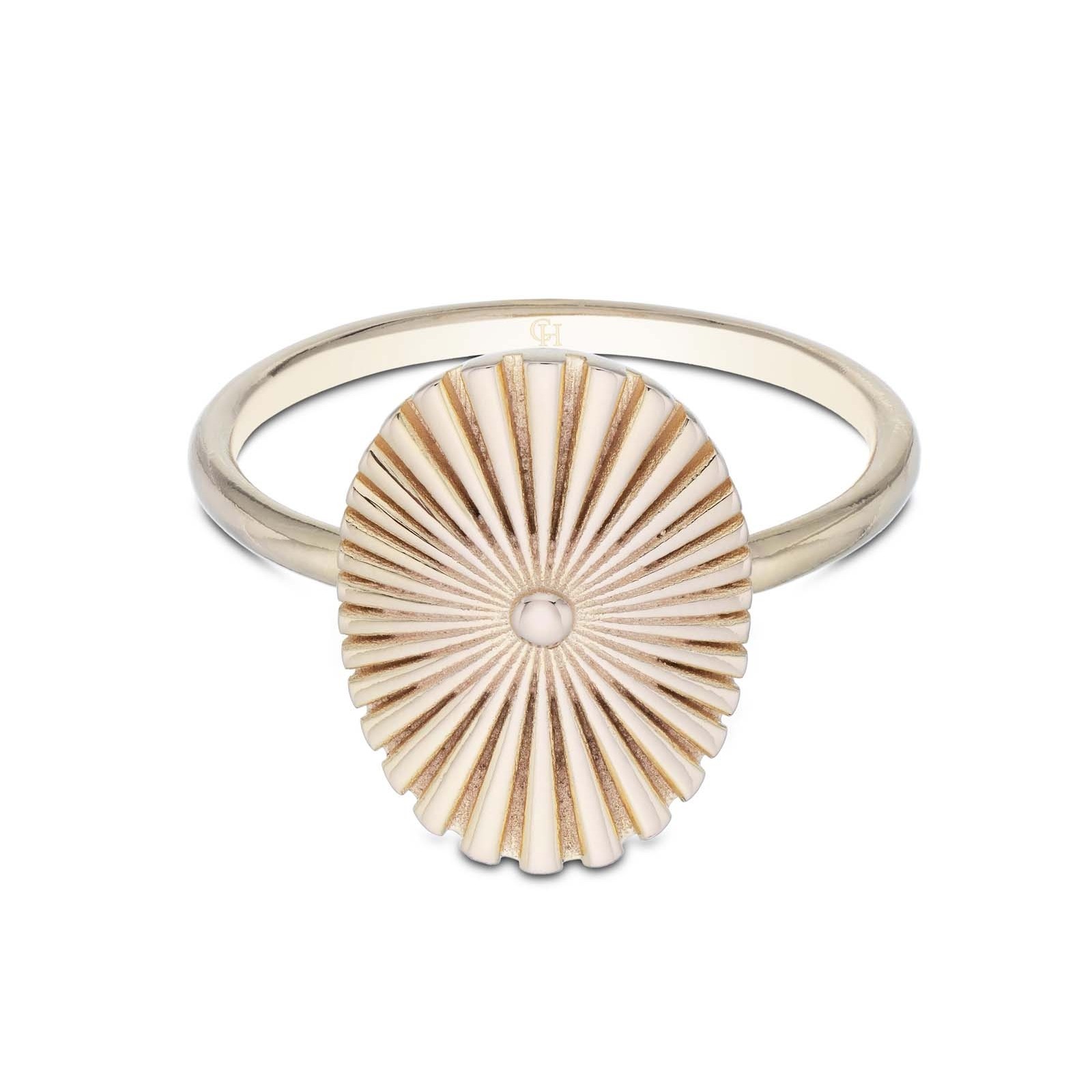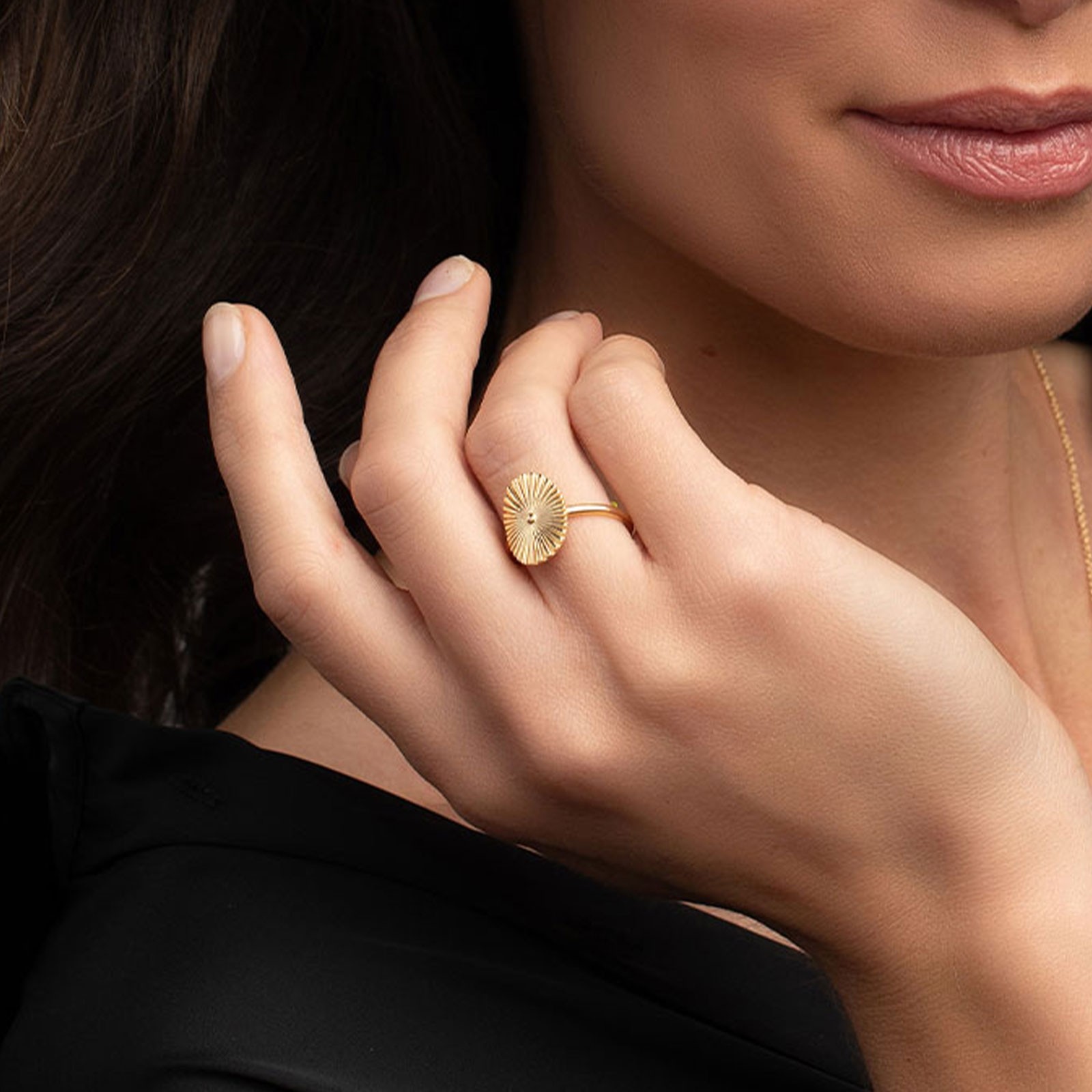 The intricate design of this Sterling Silver Yellow Gold Plated Oval Fan Ring from Chisholm Hunter will gather compliments. This piece is crafted from 925 sterling silver with 3 micron yellow gold plating with a fan carving. Complete your look with the matching items to this ring.