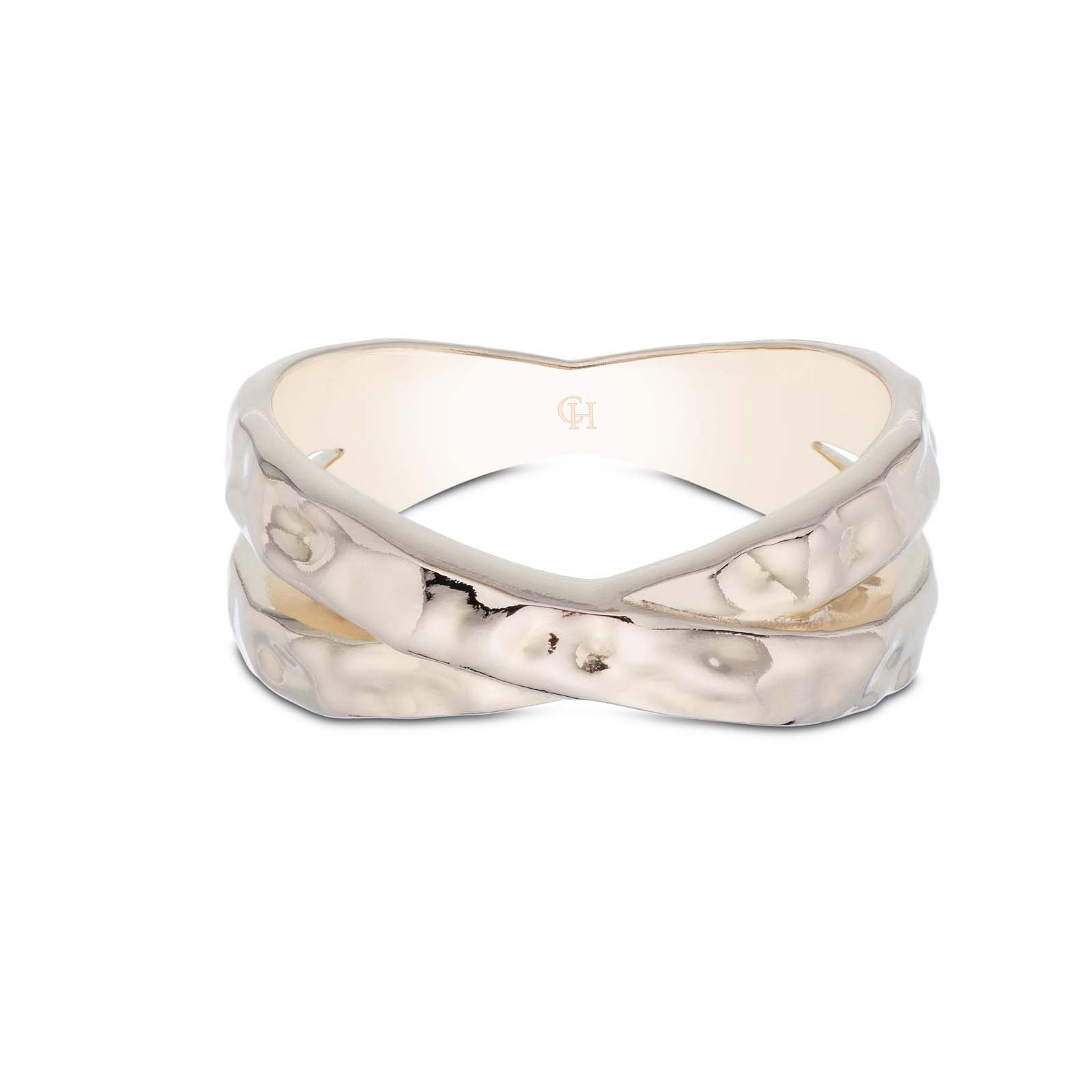 This Sterling Silver Yellow Gold Plated Textured Crossover Ring from Chisholm Hunter combines some of jewellery’s biggest trends to create a stunning piece that will become a jewellery box staple. The 925 sterling silver ring is plated with three micron yellow gold and is crafted into a crossover style with hammer-effect detailing. This piece is perfect for stacking with other rings or worn alone for a simpler look.