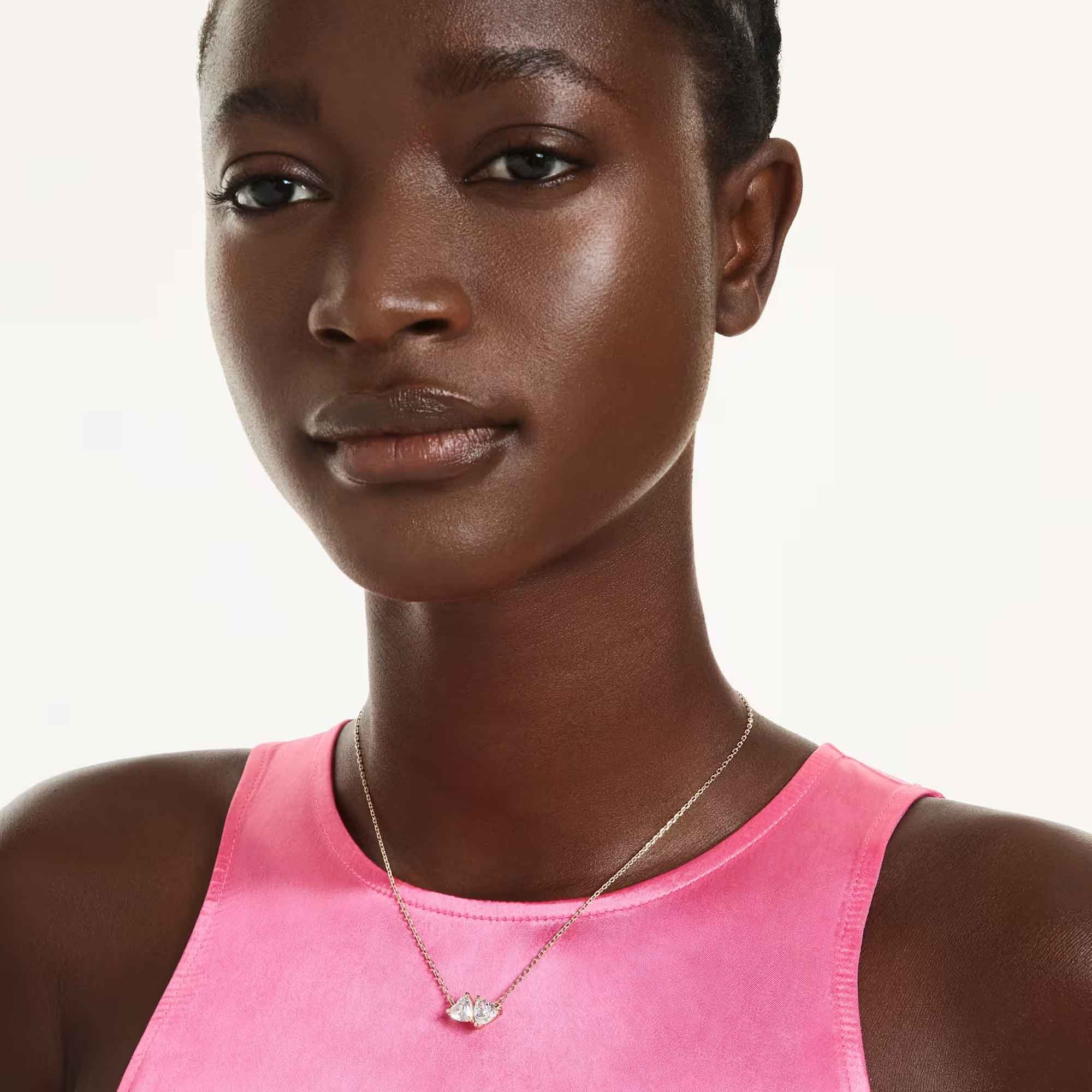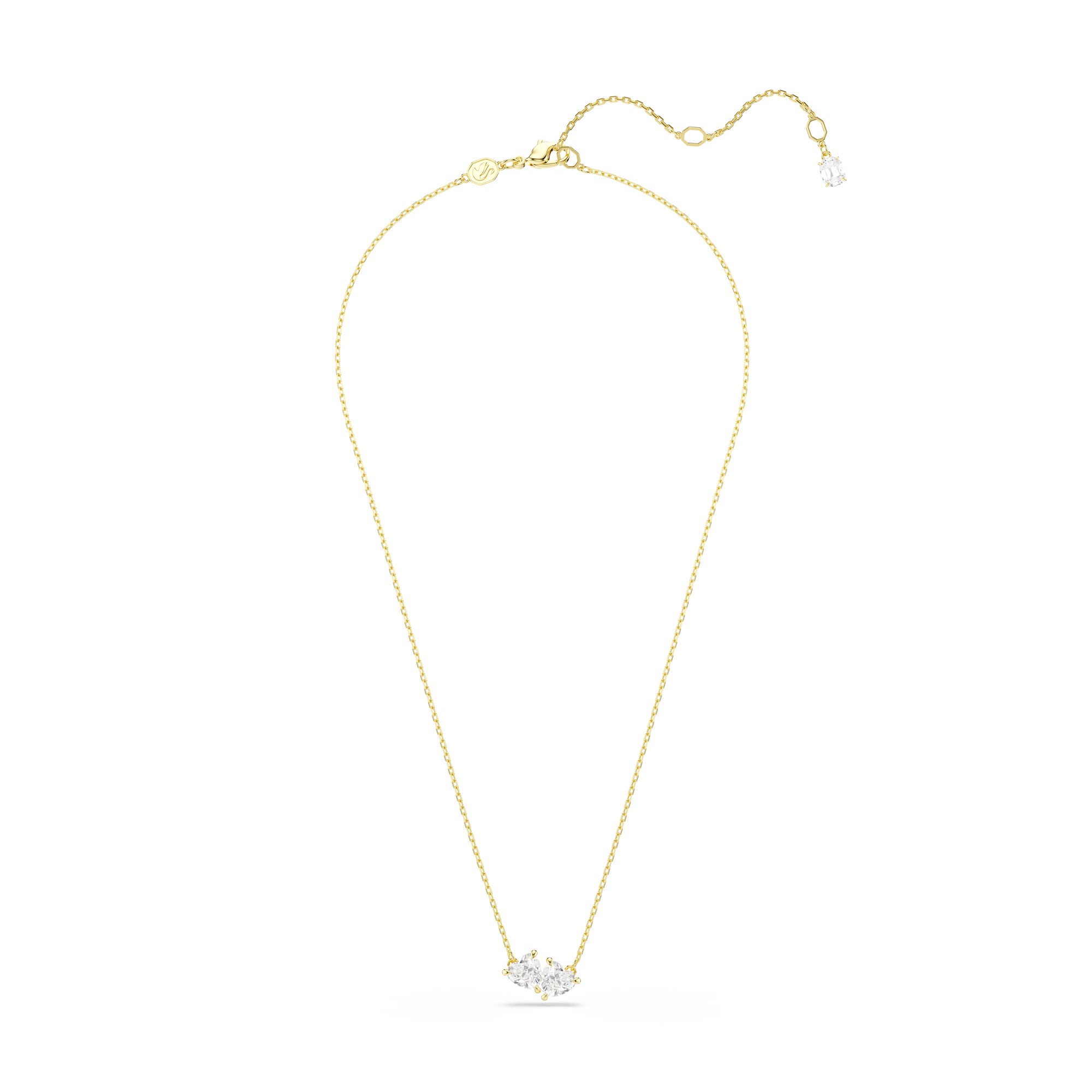The Swarovski Gold-Tone Mesmera Twin Hearts Pendant 5733475 is a stunning piece designed for her. This enchanting pendant features two intertwined hearts, symbolising love and connection. Crafted from gold-tone metal, it reflects light beautifully, making it the perfect accessory for any outfit.