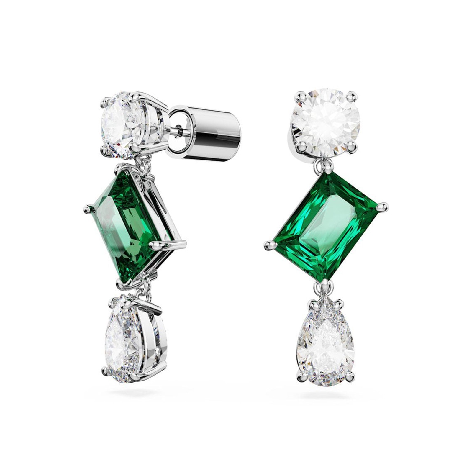 These Swarovski Mix Cut Green Cubic Zirconia Drop Earrings are the perfect example of Mesmera's astonishing and elegant style. The exquisite design features prong-set Swarovski Zirconia crystals in a rhodium plated setting, with each stone crafted in a unique shape and makes a bold statement of sheer elegance with a radiant central stone in hypnotic green for an extra hint of glamour. Timelessly elegant, these earrings are sure to be a treasured addition to any jewellery collection and ignite any special occasion, making these a perfect gift. Shop today at Chisholm Hunter and complete the look with matching pieces for the ultimate look of refinement.