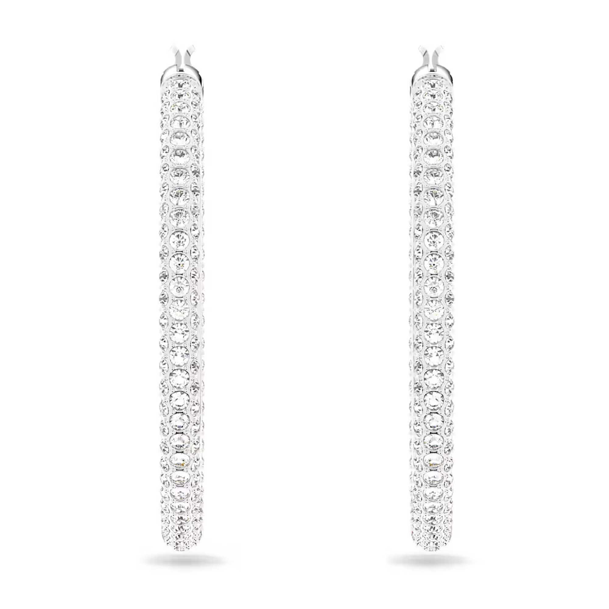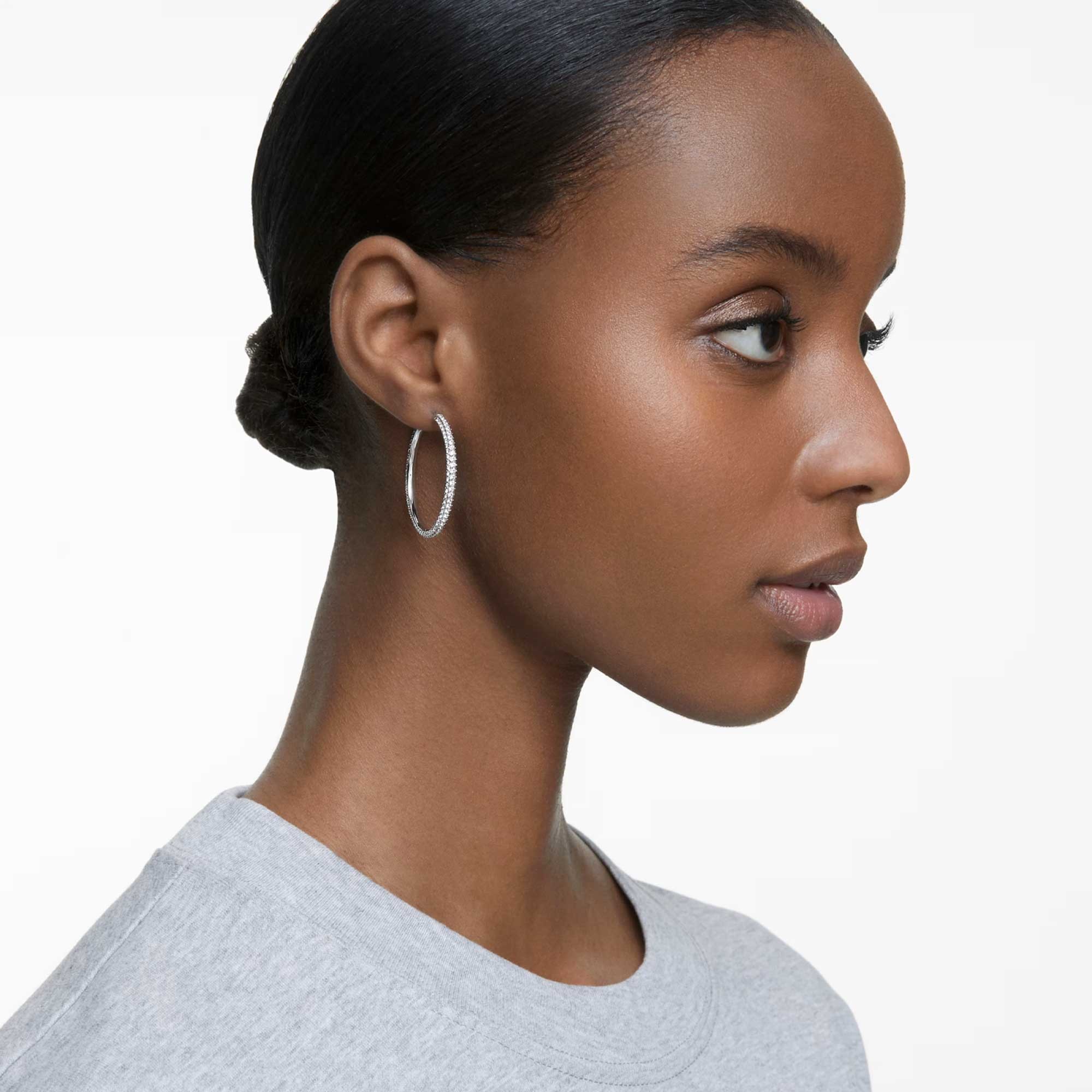 These SWAROVSKI hoop earrings are both timeless and classic, the perfect additon to any jewellery collection. The delicate rhodium-plated design is decorated with crystal pavé for that special SWAROVSKI sparkle, make these earrings the perfect finishing touch for any outfit, from day to evening.