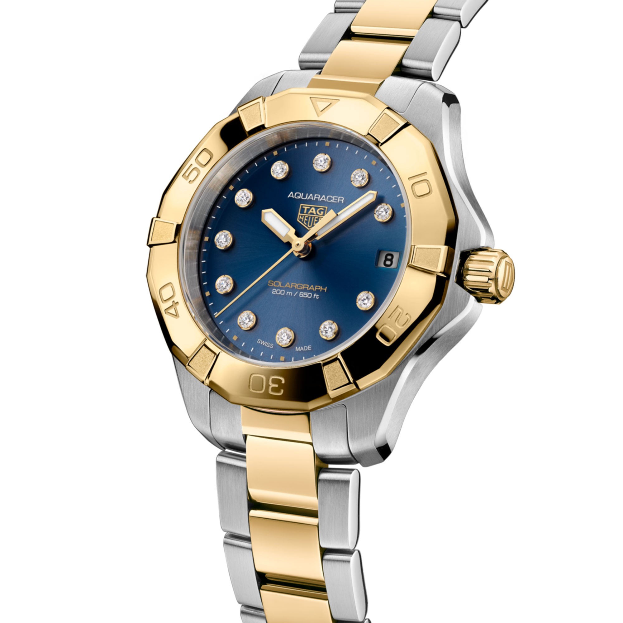 The TAG Heuer Aquaracer Professional 200 Solargraph merges elegance and resilience in a striking two-tone design of polished steel and 18K 2N yellow gold. Powered by the Solargraph technology, this refined timepiece is ready for any journey, from urban settings to the depths of the wild.