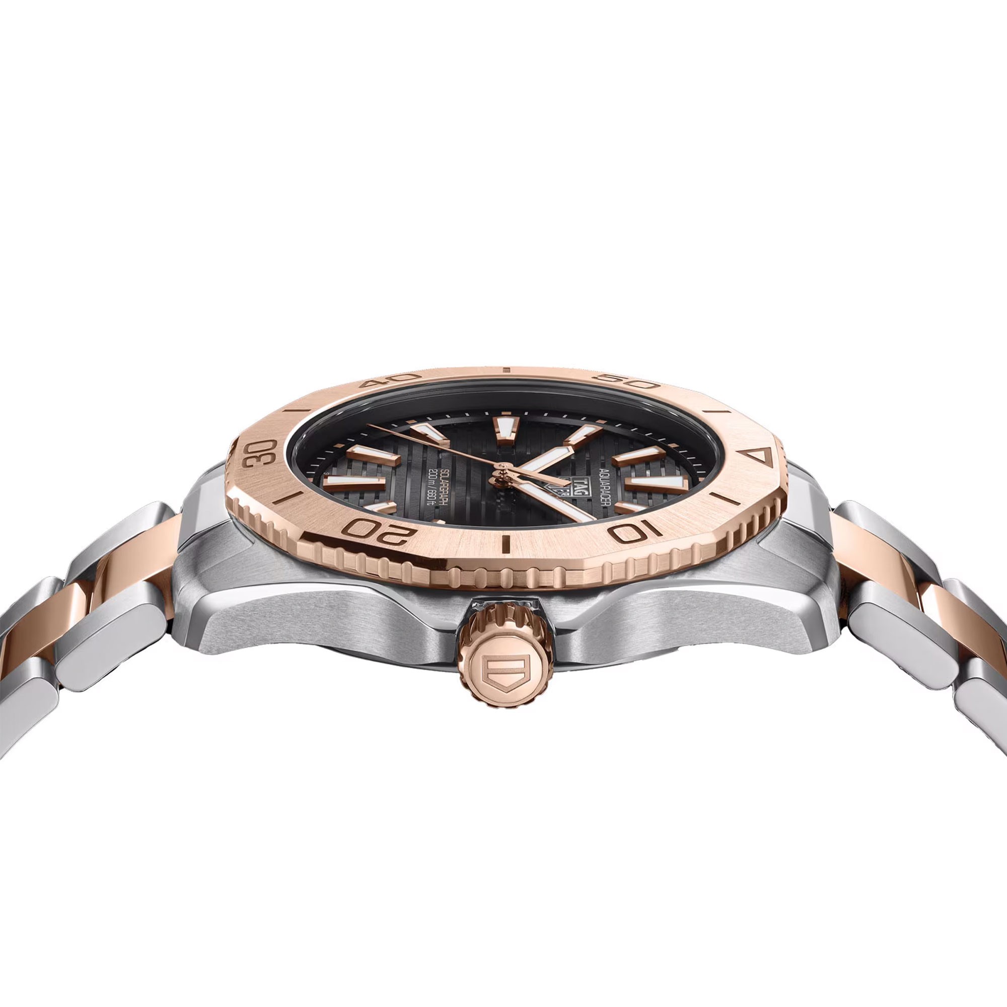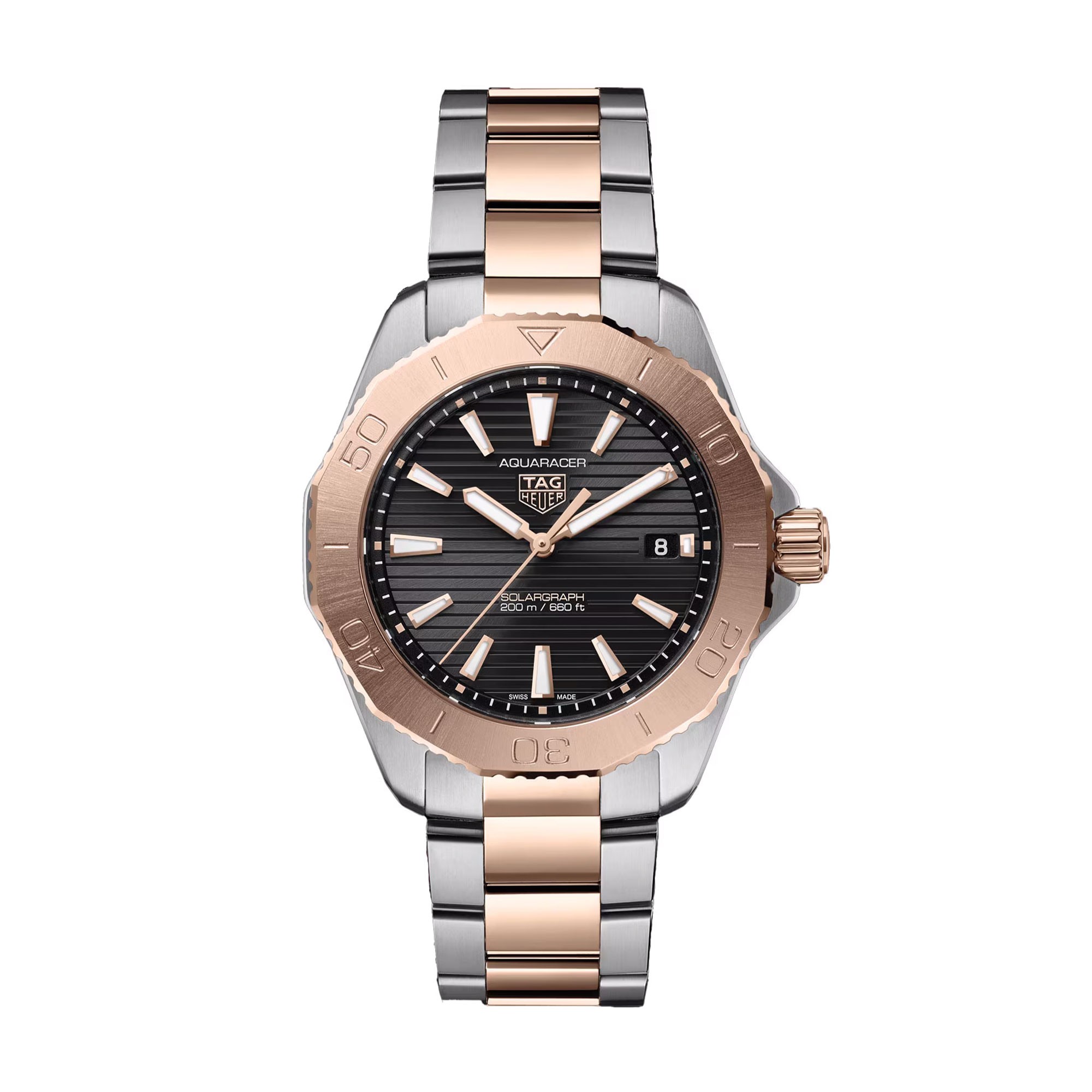 Experience the TAG Heuer Aquaracer Professional 200 Solargraph 40mm Men's Watch WBP1121.BB0003, a seamless blend of luxury and performance. This stylish timepiece features a robust 40 mm stainless steel case with intricate 18K 5N rose gold plating, designed for those who appreciate both elegance and functionality.