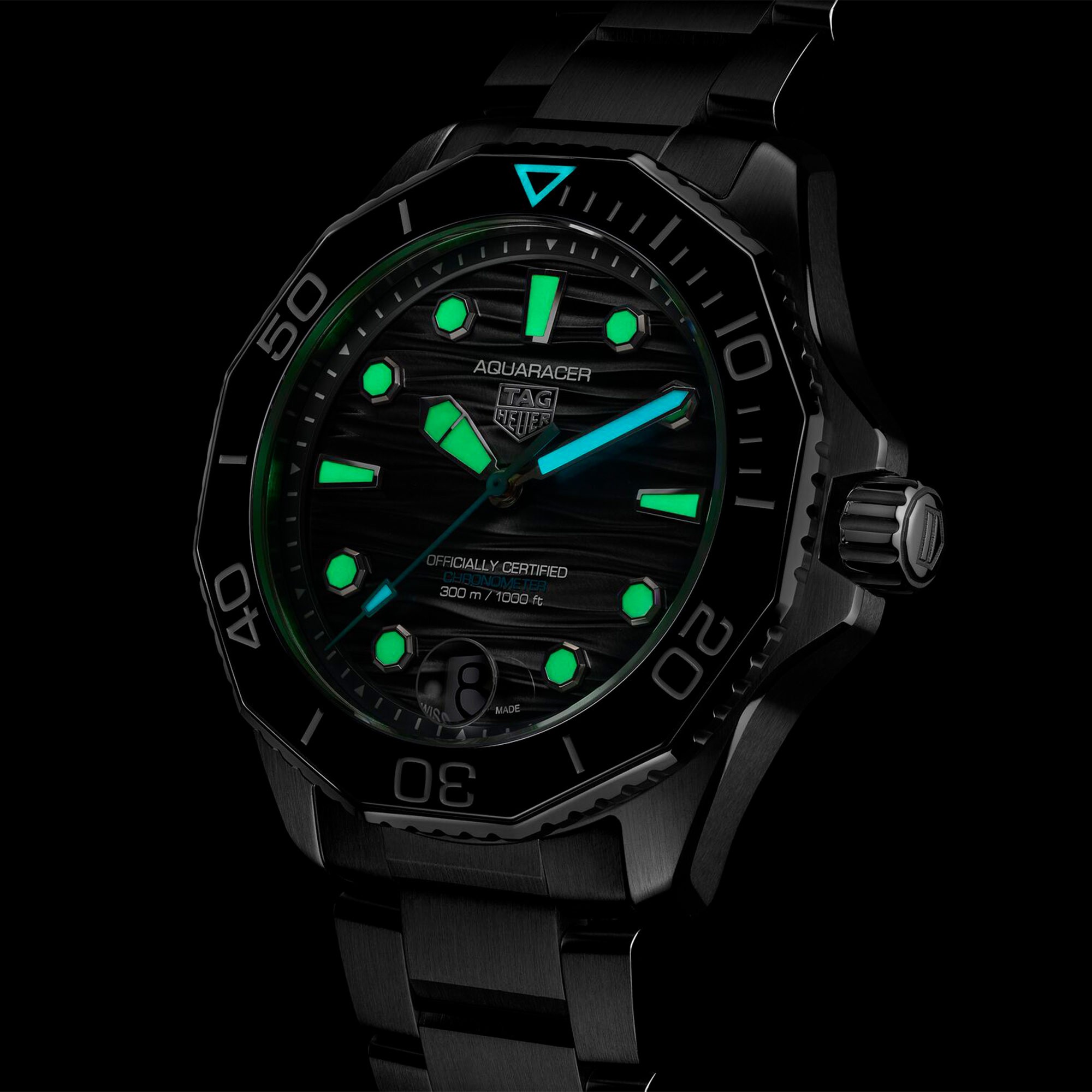 This timepiece goes beyond aesthetics, bridging the gap between style and technology. The Aquaracer is equipped with a calibre TH31-00 functionality, a stainless steel screwed caseback, and a secure, screw-down crown. Its applied indexes are adorned with white Superluminova, as are its hour and minute hands, for optimum readability in any light conditions.