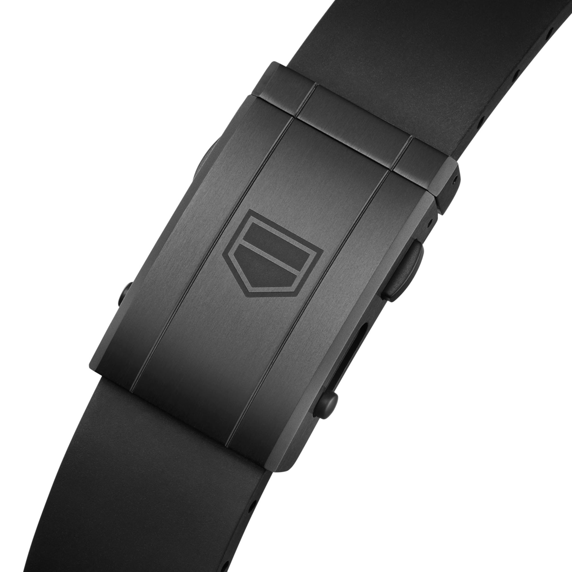 Integrating a black DLC-coated Grade 2 titanium case and topped with a matte ceramic bezel, this bold timepiece is a fortress of resilience and style.