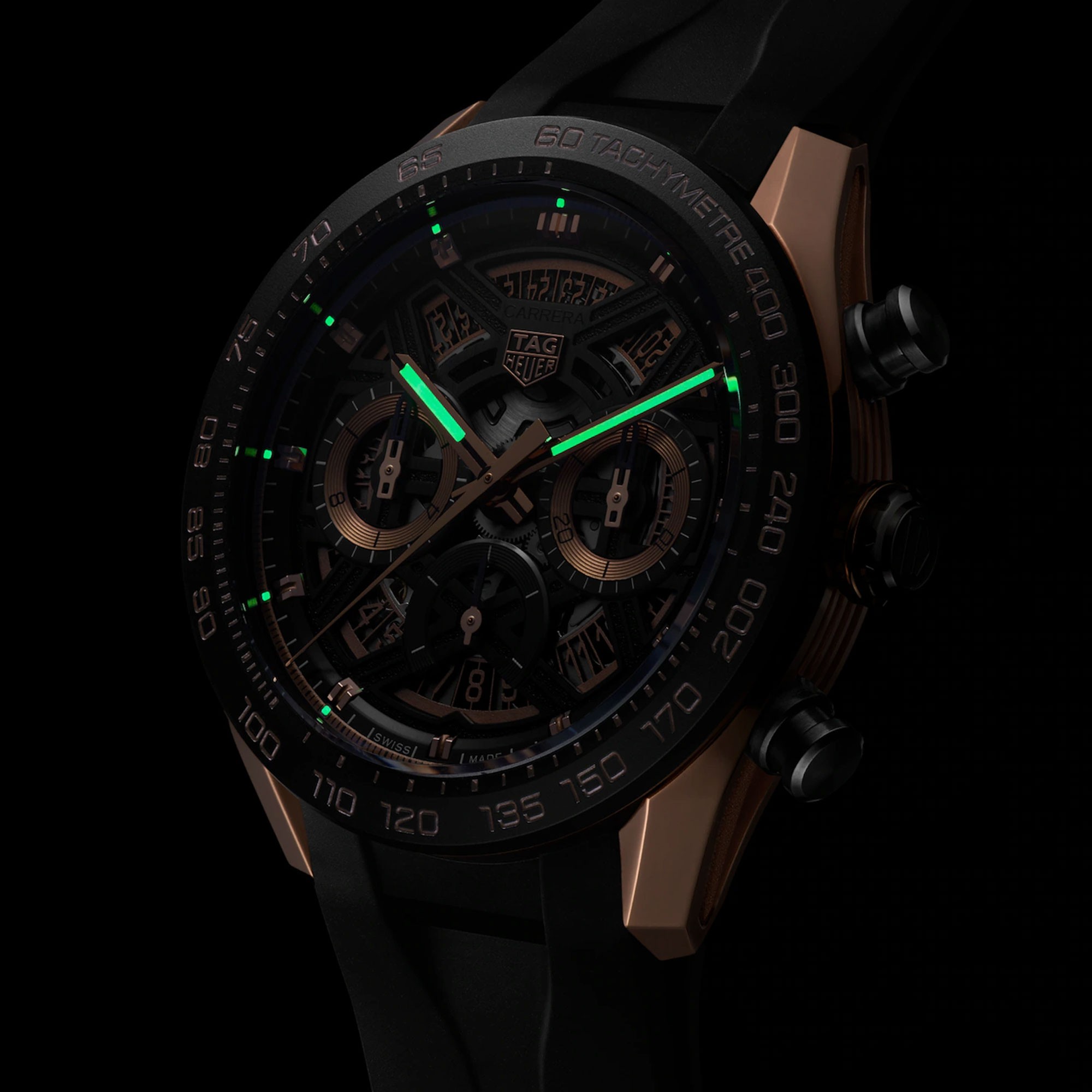 Audacity meets elegance in this one-of-a-kind TAG Heuer Carrera Chronograph. With its skeleton design and rose gold accents, this exhilarating chronograph embodies the spirit of motorsport and luxury combined—a timepiece for those who dare to stand out.