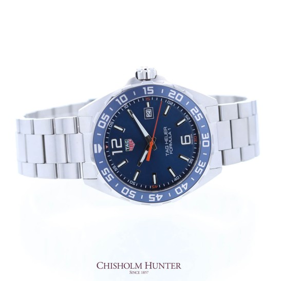 Heuer Watch Company was founded in 1860 by Edouard Heuer. His first watchmaking workshop was located in St-Imier, in the Swiss Jura region. The company soon built a reputation for quality workmanship and precision timekeeping. TAG Heuer is one of the world's leading luxury watch brands, offering a strong history of innovation, deep connections with sports timing and automobile racing. This watch is inspired by the performance and bravery of Formula 1 drivers this TAG Heuer Formula 1 watch boasts a powerful steel aesthetic and immaculate Swiss made quartz movement aimed at those thriving in a fast-paced life. The Formula 1 watch collection has long secured the brand’s place as a leading sports watch manufacturer since they became the Official Timekeeper of the Formula One World Championships in 1992.A classic three-hand men’s quartz watch with oversized “6” and “12” on a sunray blue dial – inspired by Formula One, embodying TAG Heuer’s unique racing heritage and commitment to excellence under pressure.Super-LumiNova® applied indexes provide perfect legibility, as does the easy-read angled date window at 3 o’clock. The iconic screw-down crown has “Easy Grip” finishing for better handling with driving gloves.