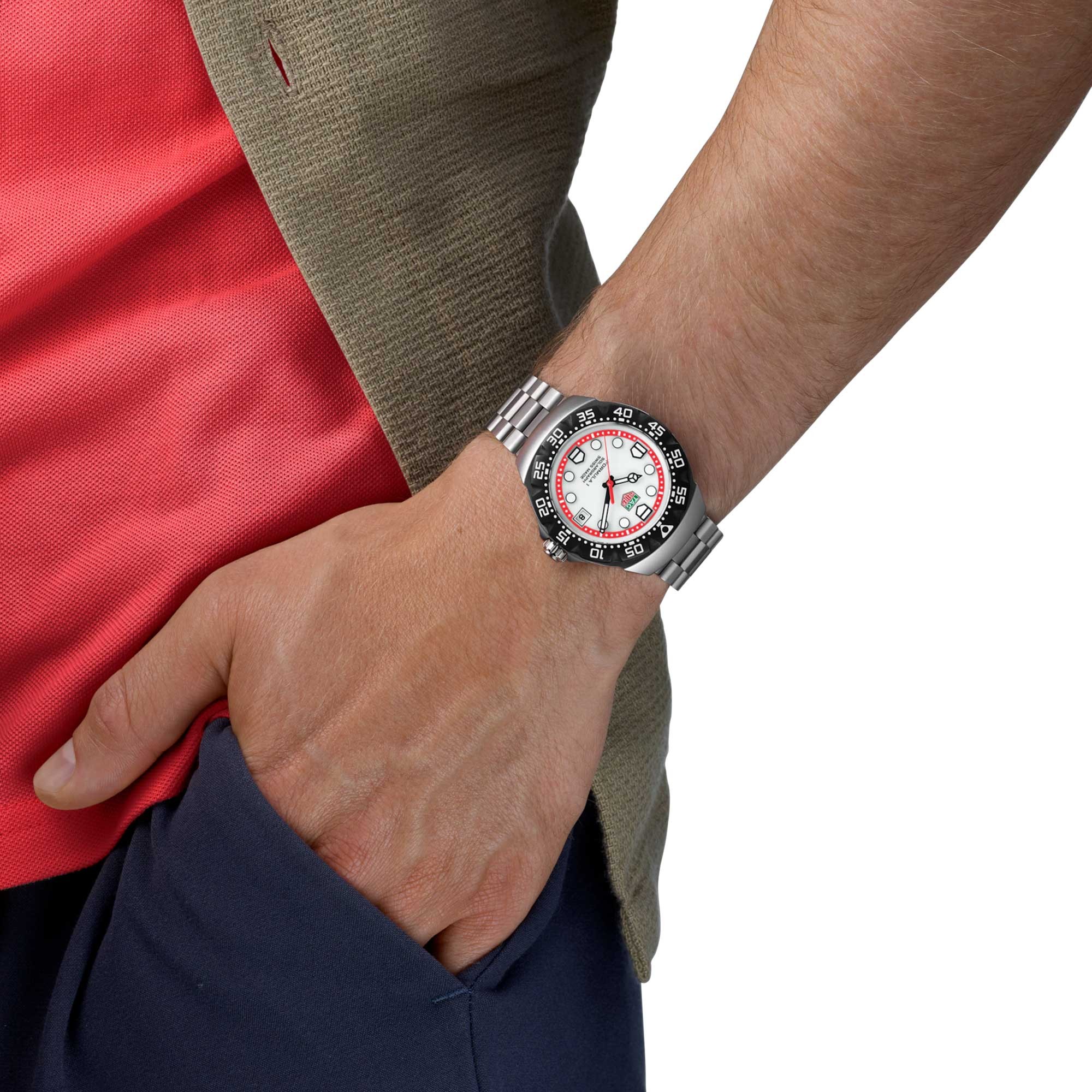 The TAG Heuer Formula 1 Solargraph, now in a versatile 38 mm size, showcases its energetic allure. With a solar-powered quartz movement and contemporary design, it reinterprets the original Series 1 watch with modern materials and vibrant colours, offering a dynamic timepiece for the new generation.