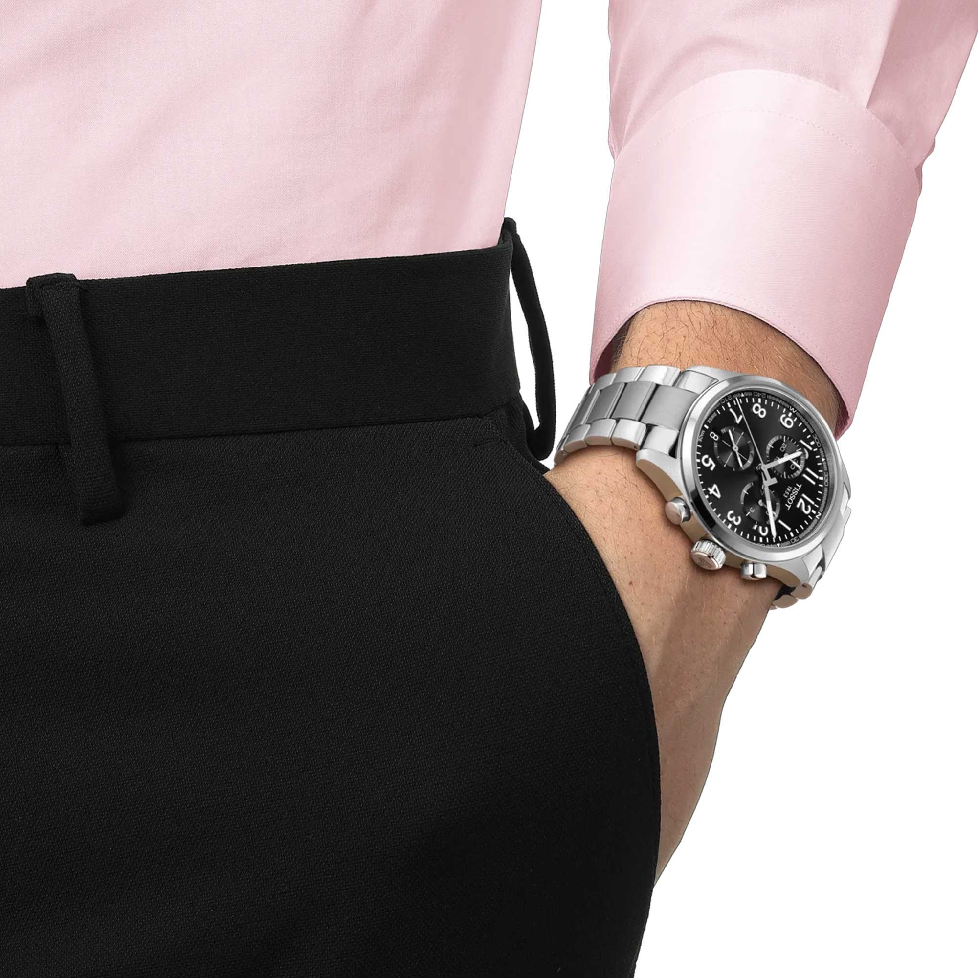 The G10.212 chrono quartz movement provides precision and robustness. In addition, the watch is waterproof up to a pressure of 10 bar (100 meters/330 feet), and offers a visibility in low-light conditions guaranteed by the Super-LumiNova® coating on the needle-shaped hands. Straps and bracelets can be interchanged using Tissot’s easy-to-use quick strap change system, giving the owner the opportunity to choose from a wide range of compatible Tissot straps and personalise their watch to suit mood or occasion.