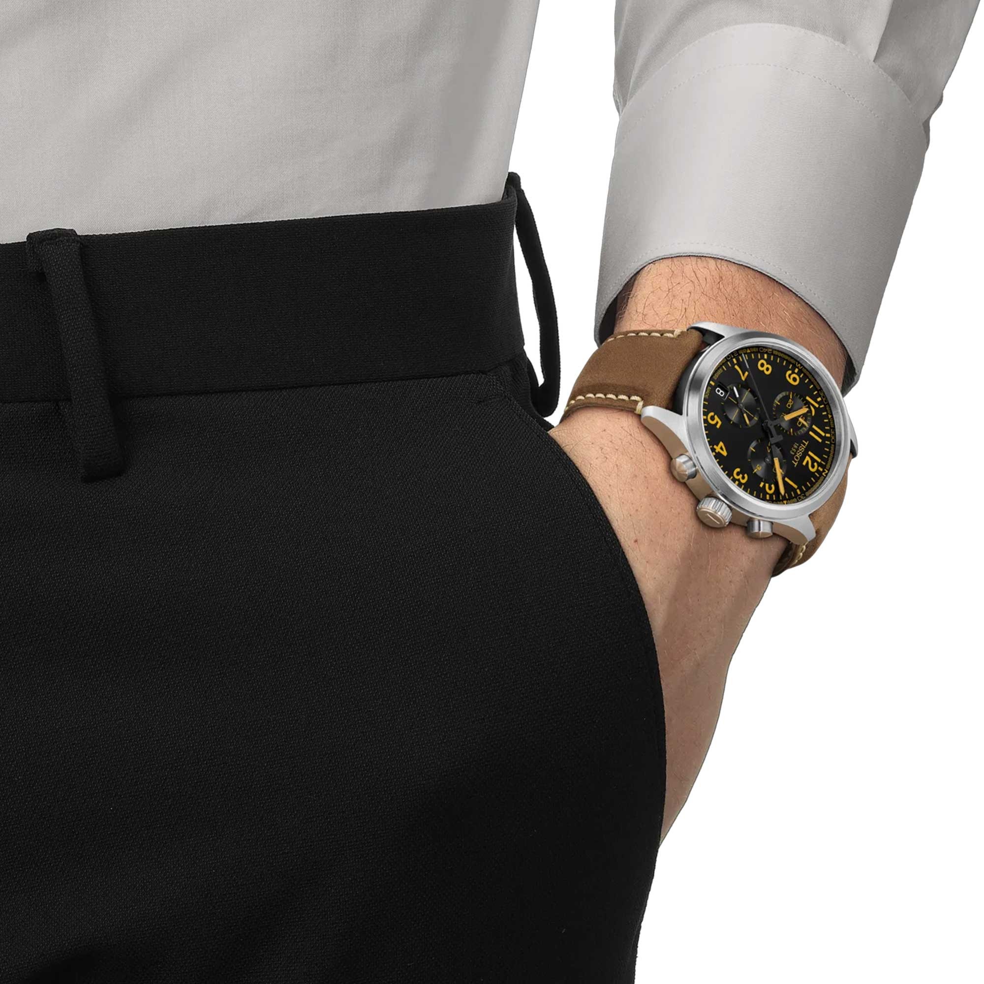 The G10.212 chrono quartz movement provides precision and robustness. In addition, the watch is waterproof up to a pressure of 10 bar (100 meters/330 feet), and offers a visibility in low-light conditions guaranteed by the Super-LumiNova® coating on the needle-shaped hands. Straps and bracelets can be interchanged using Tissot’s easy-to-use quick strap change system, giving the owner the opportunity to choose from a wide range of compatible Tissot straps and personalise their watch to suit mood or occasion.