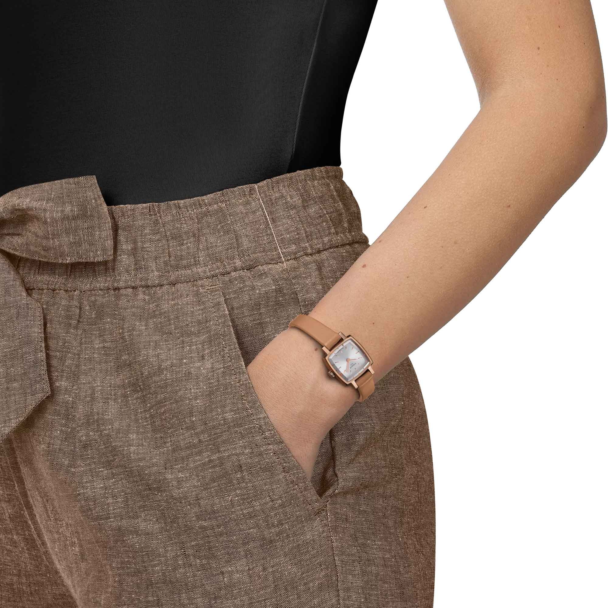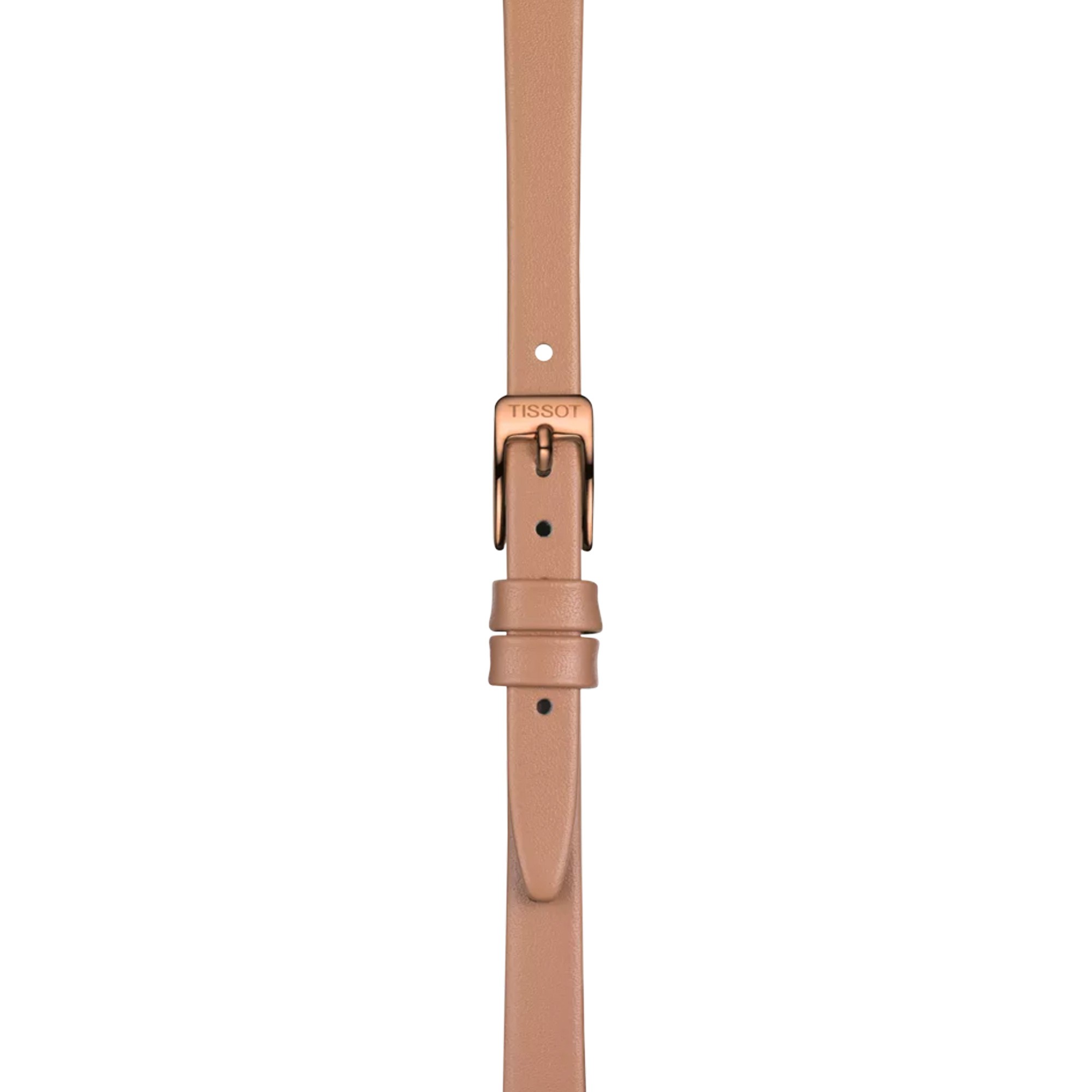 In addition to the light brown leather strap with pin buckle, this summery set comes with three additional leather straps in pastel mint, green and pink. Thanks to the quick-change system, this Tissot Lovely can be quickly and easily adapted to a wide variety of looks.