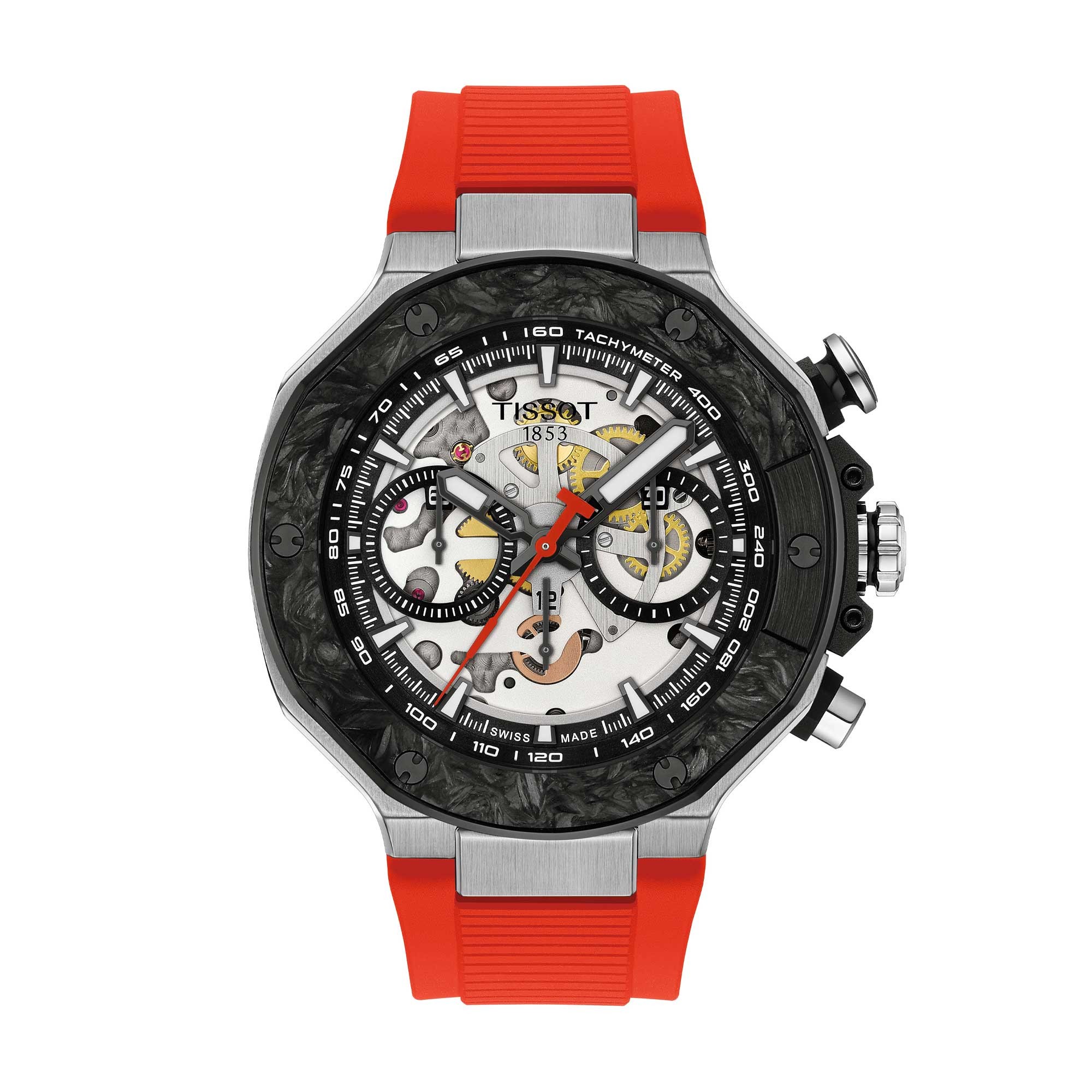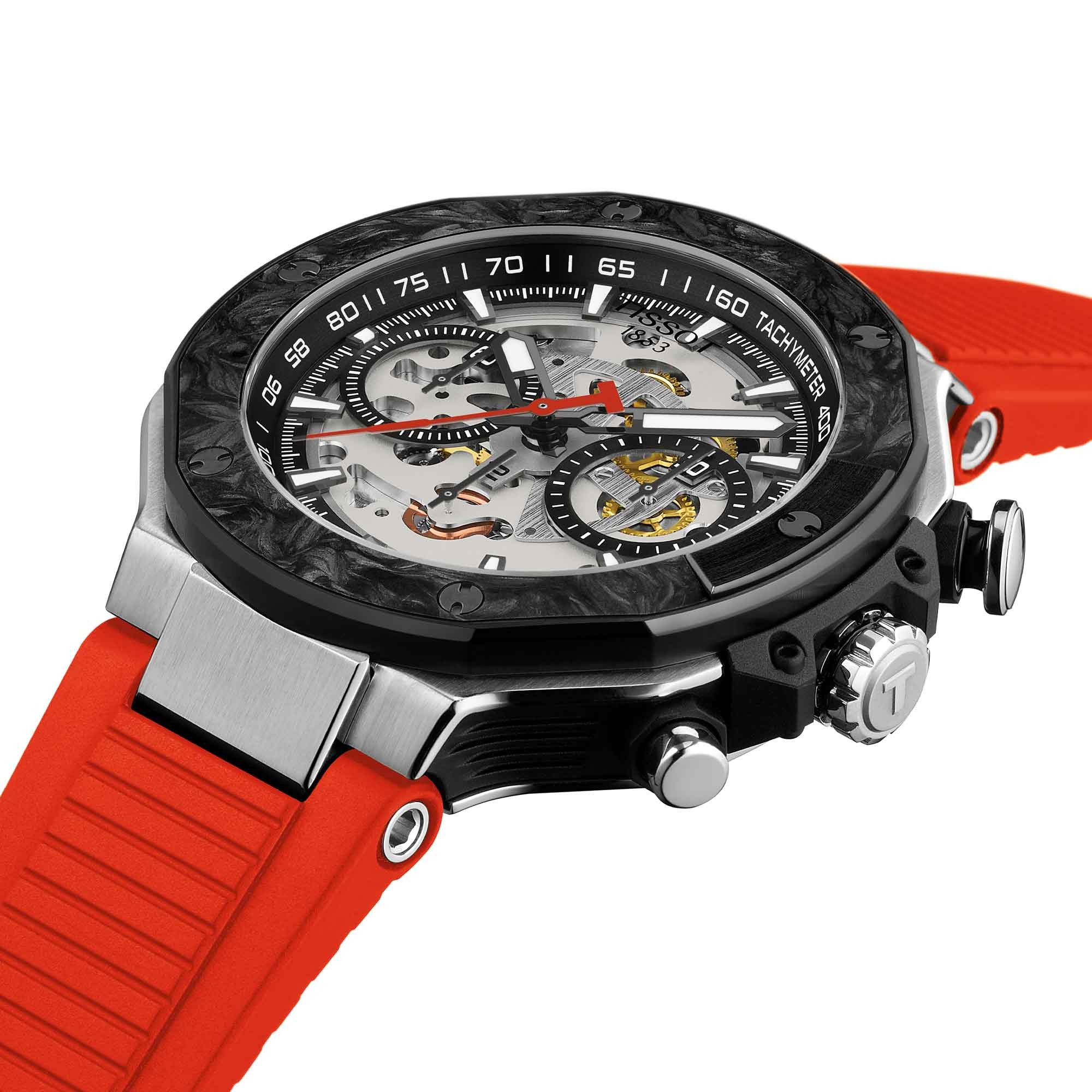 To celebrate over two decades of partnership with MotoGP™, the iconic T-Race collection inspired by racing bikes, expands in 2026 with new references, including this exclusive Automatic Valjoux Chronograph skeleton model.