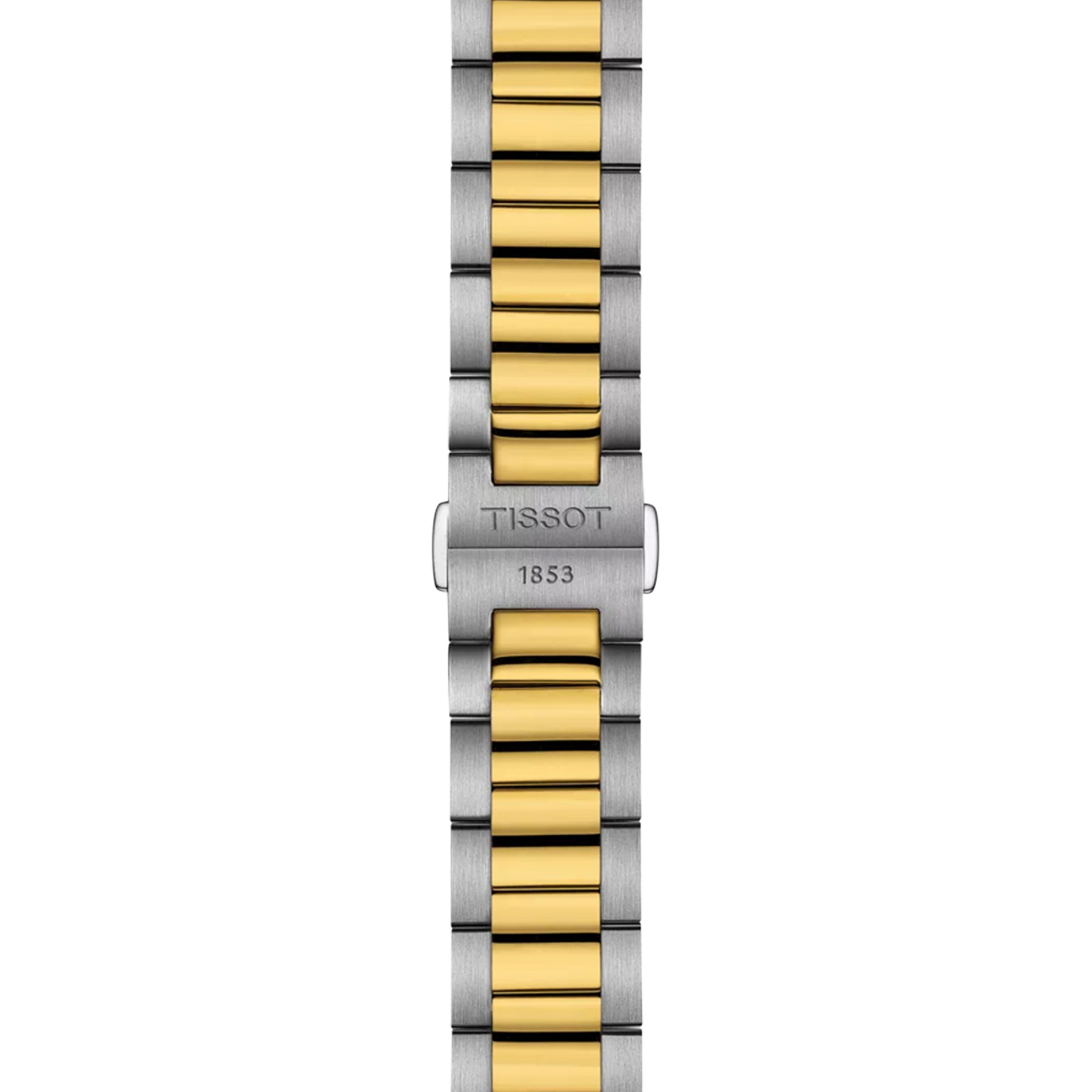 The SuperLuminova®-coated hands enable precise reading even in the dark. This Tissot PR 100 Quartz model features a 40mm stainless steel case with a gold PVD bezel, a bright white dial and a classic two-toned stainless-steel and gold PVD strap for a touch of elegance that will make the difference.