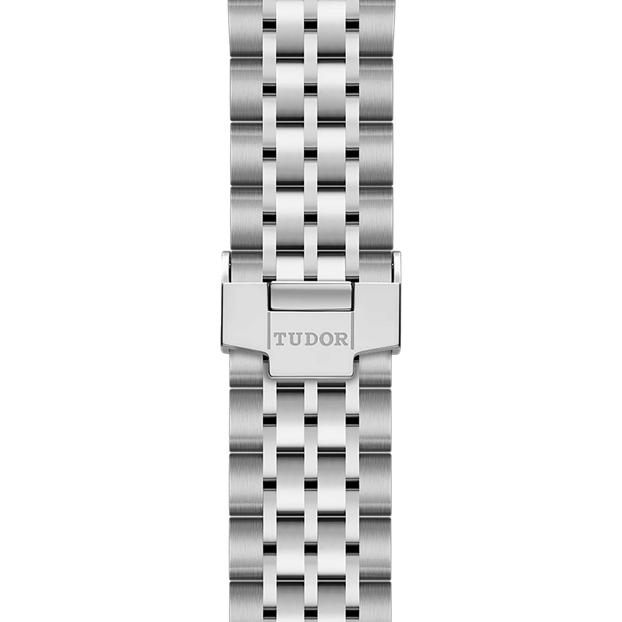 The TUDOR 1926 Luna features black, blue or champagne-colour sun-brushed dials, domed for a vintage touch, and a TUDOR metal seven-link bracelet. The wealth of detail on the dials of the 1926 line creates a striking and intricate play of light that perfectly complements the sword-shaped hands with their matching colours, and the moon phase indicator at 6 o’clock adds poetry to the watch.