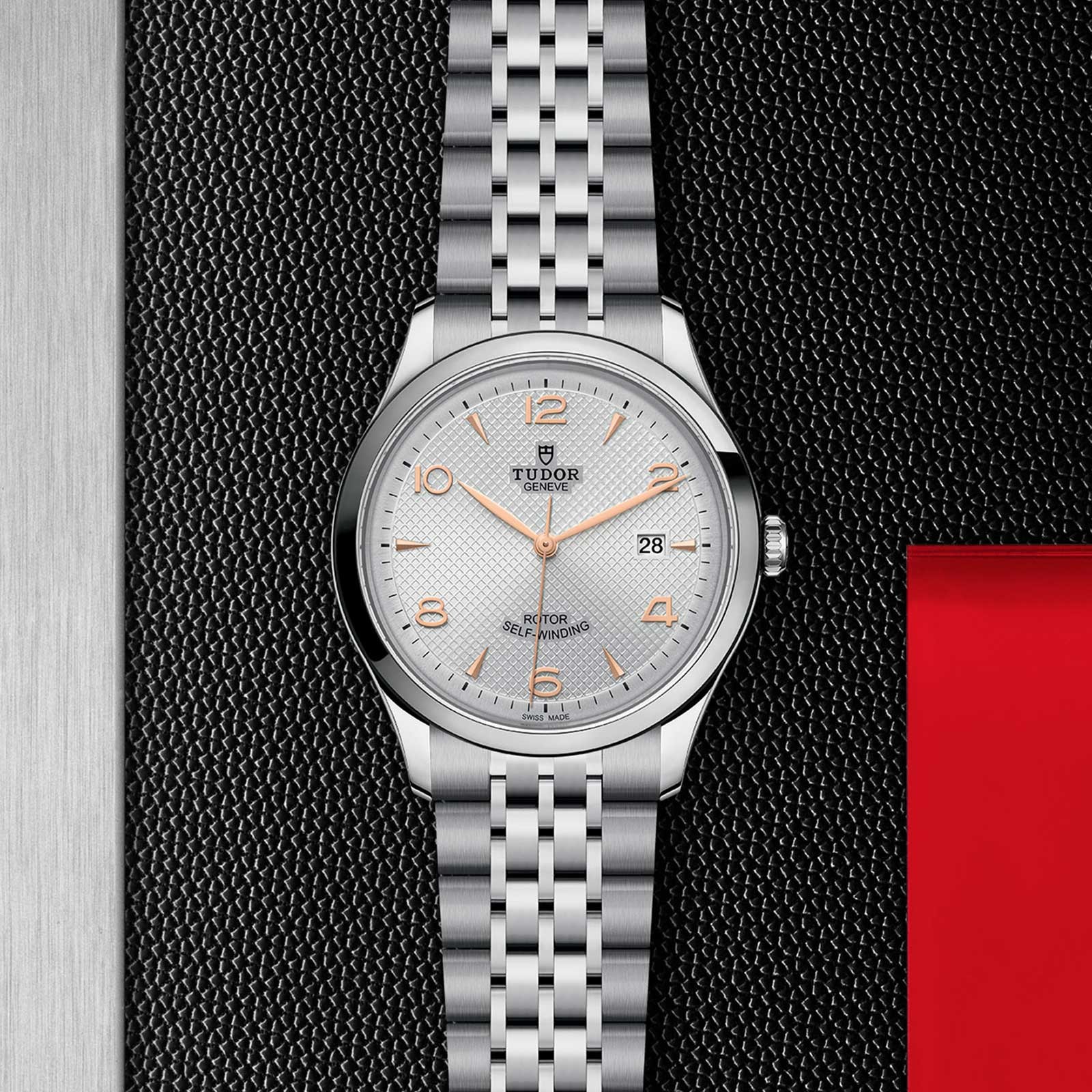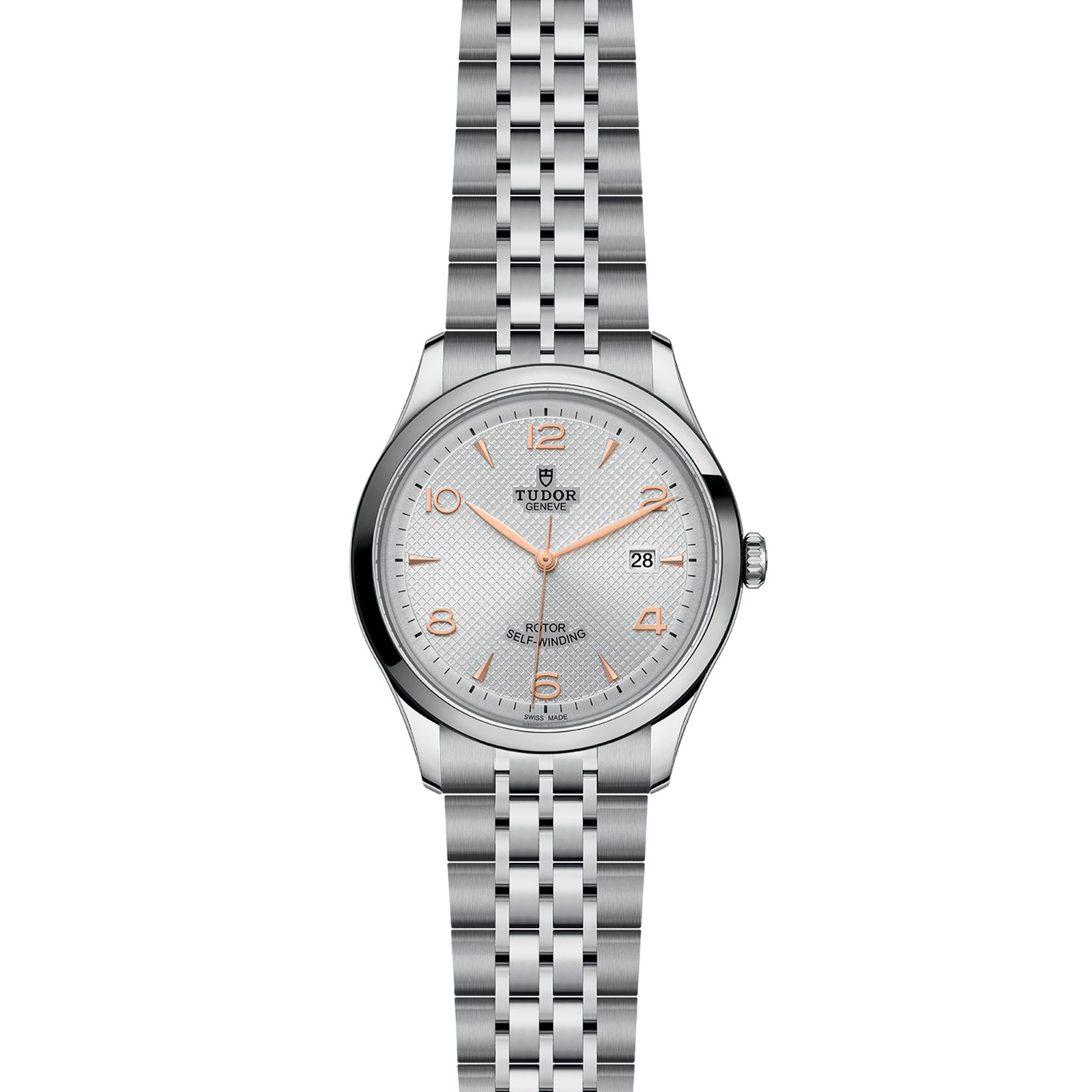 Tudor pays tribute to its origins and watchmaking traditions with its 1926 line, a range of mechanical watches that are timeless, classic and elegant. Available in four sizes with a wide choice of dials, the 1926 line is named after the year when “The Tudor” was registered as a brand on behalf of Rolex founder Hans Wilsdorf. This Tudor 1926 Men's Watch M91650-0001 is presented in a polished 41mm stainless steel case and protected by sapphire crystal glass. High performing, yet incredibly stylish, this 1926 watch boasts a silver-tone embossed dial equipped with gold-tone hour markers and hands and a date display window at 3 o’clock. Coordinated with a steel bracelet, containing 7 rows with satin-brushed external links and polished centre links, secured by a folding clasp and safety catch. Water resistant to 100 metres and powered by a Calibre T601 self-winding mechanical movement, this high-performance timepiece benefits from a 38-hour power reserve and a smooth steel bezel with a polished finish. Perfect for the modern wearer who admires impeccable style with the best of watch craftsmanship. Explore the full Tudor collection today at Chisholm Hunter.