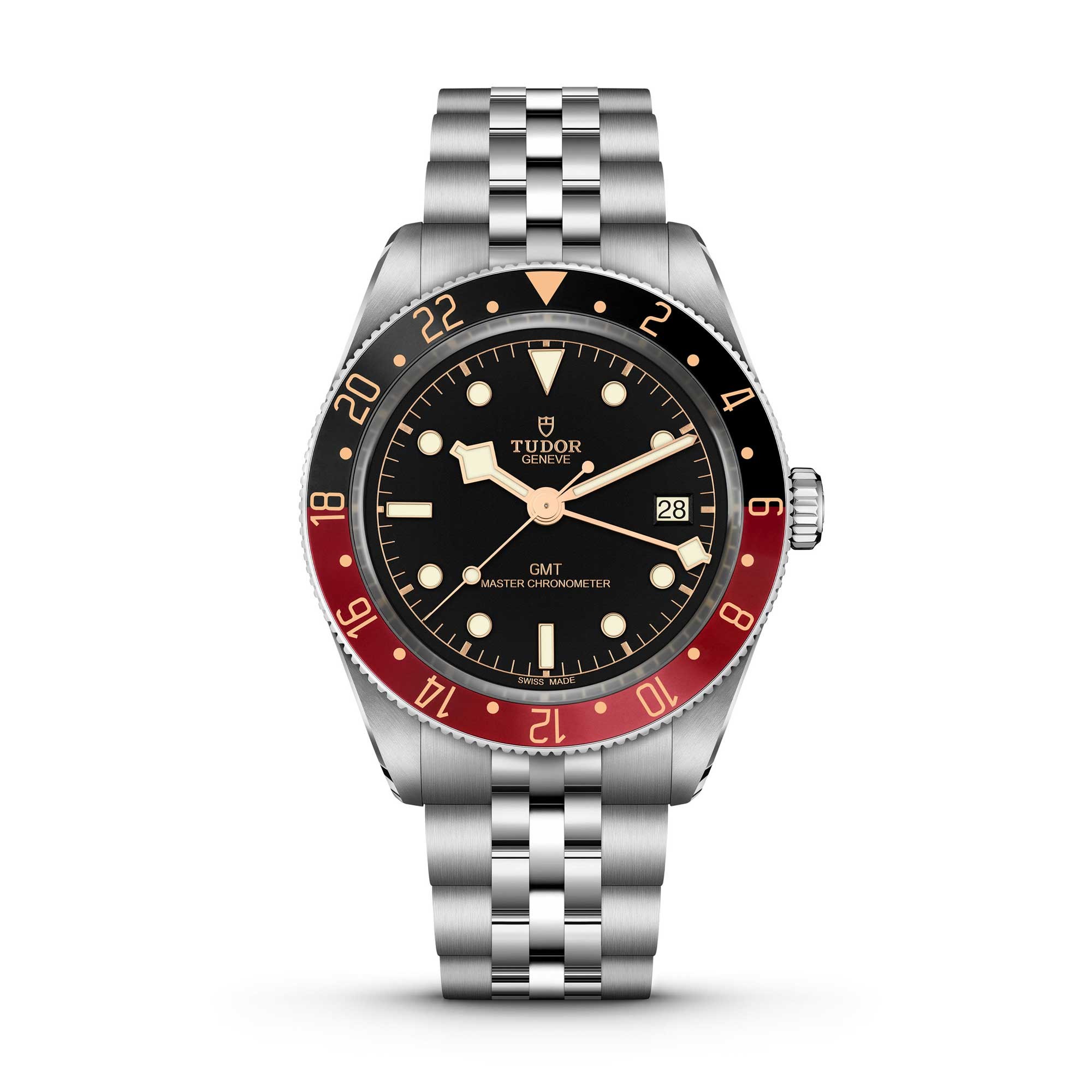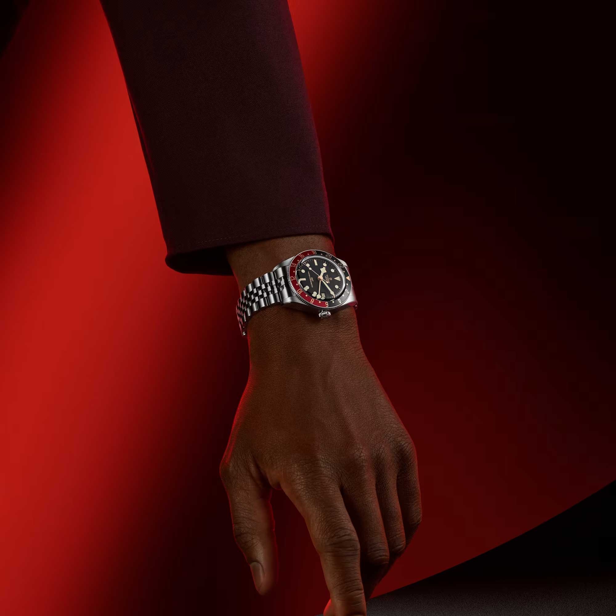 This model is evocative of an era when the novelty of jet-setting across time zones was matched by glamorous and elegant style. It is fitted with TUDOR’s new mid-size GMT Manufacture Calibre paired with warm hues of burgundy, black and gilt on the bezel. The universally appealing case of the Black Bay 58 has become the model’s calling card, and now it comes in GMT form.