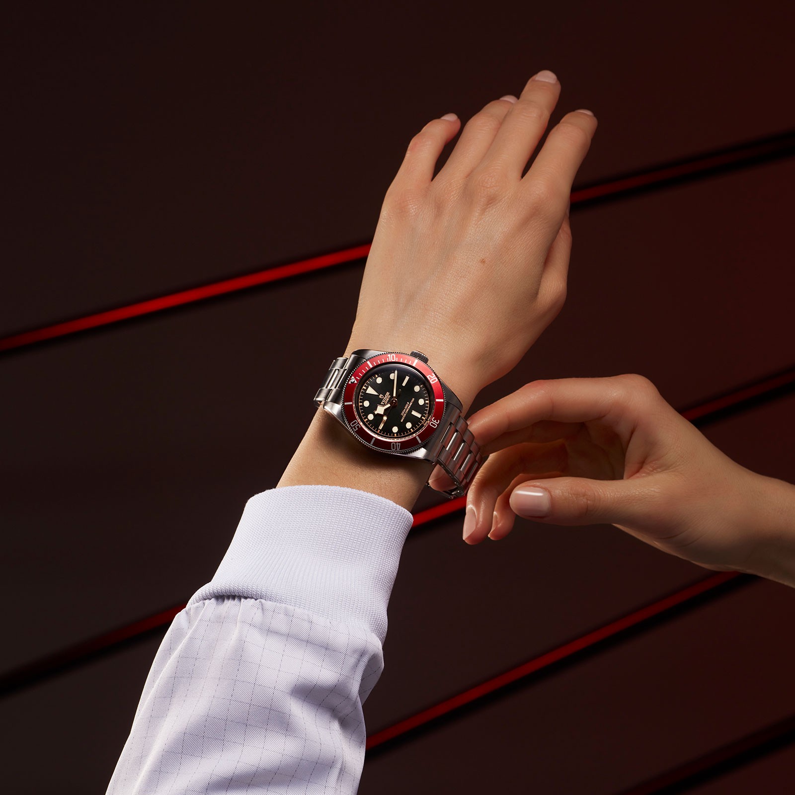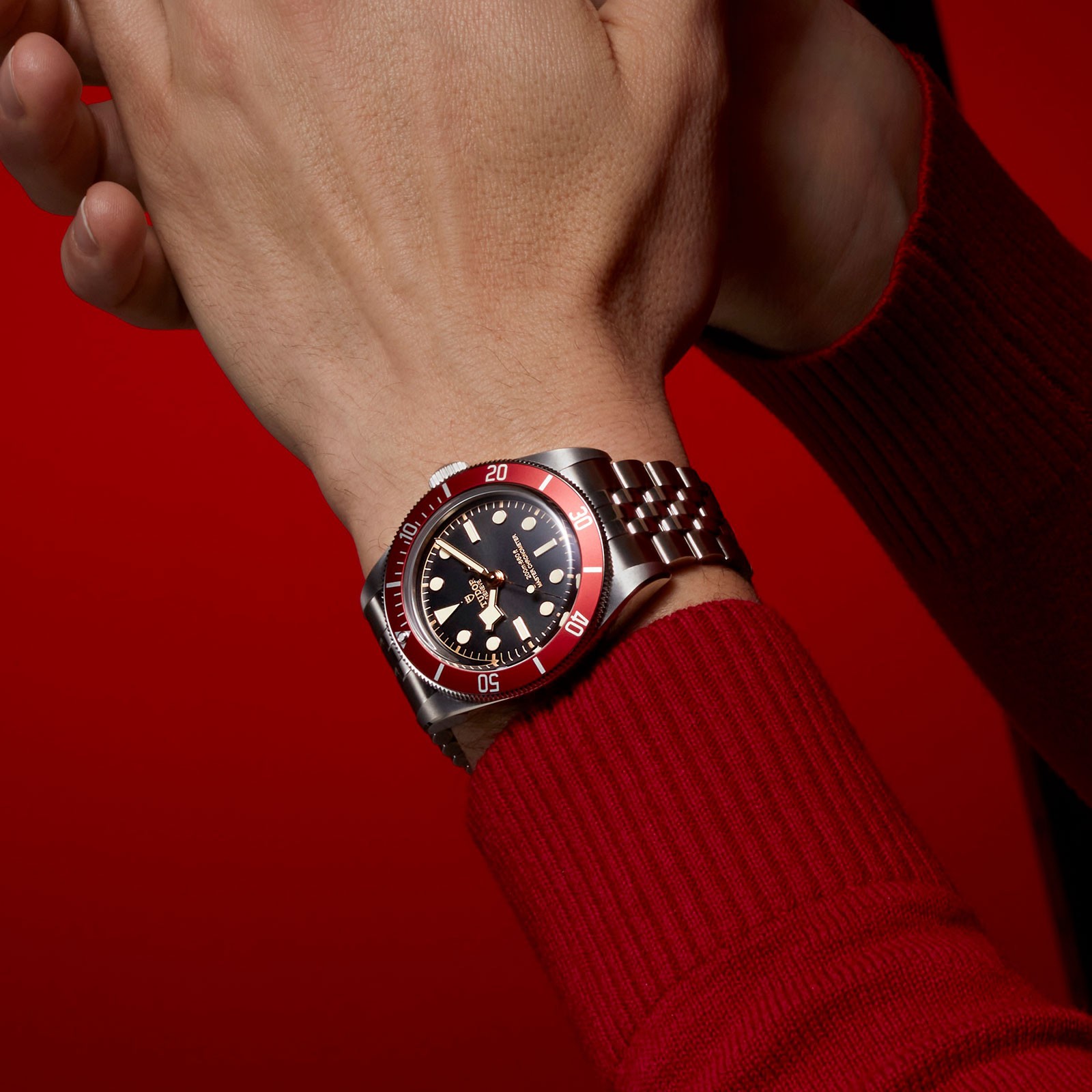 Launching at Watches & Wonders 2023, the TUDOR Black Bay M7941A1A0RU-0002 features a 41mm stainless steel case in a polished and satin finish. Powered by the Manufacture Calibre MT5602-U; a self-winding mechanical movement with a bidirectional rotor system and 70hr power reserve, the case also features a unique stainless steel screw-down crown with the TUDOR rose to finish. Housed underneath the sapphire crystal is a black domed dial, framed by a 60 minute unidirectional bezel in stainless steel, with an aluminium burgundy insert. Waterproof to 200m/660ft, this watch is presented on a stainless steel three-link bracelet with a TUDOR ‘T-fit’ clasp.