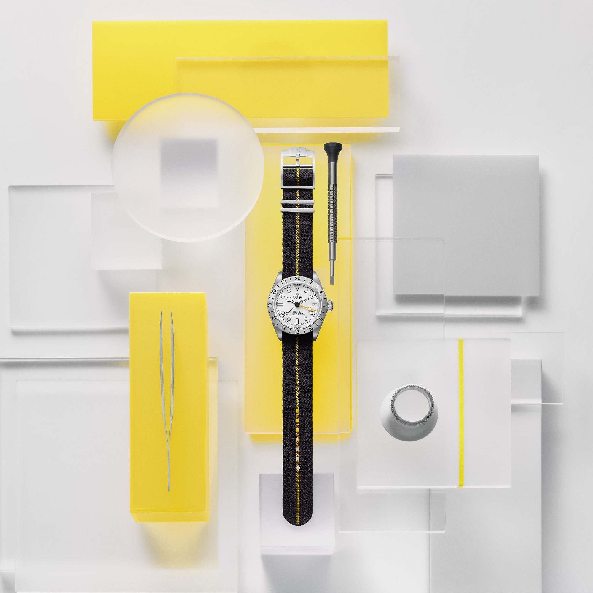 The round case, with a depth of 14.6mm, presents a bold yet sophisticated profile. The synthetic strap, secured with a pin buckle, ensures comfort and versatility, suitable for any wrist. Packaged in TUDOR presentation packaging, this watch is an exceptional gift for anyone who appreciates fine craftsmanship.