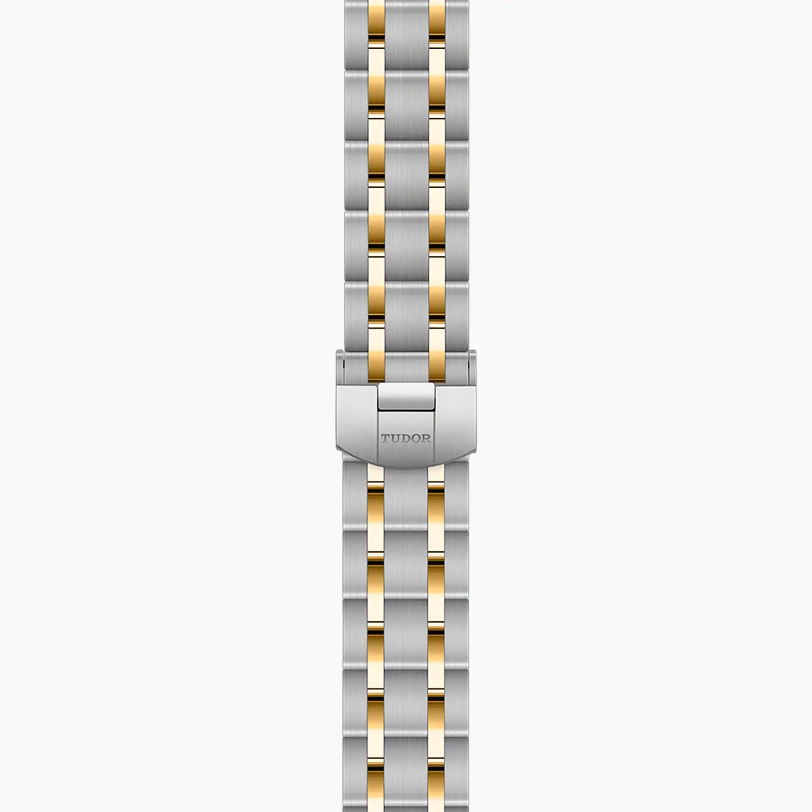 Finding the perfect balance between prestige and quality, Tudor have added this stunning watch to their Royal collection. Beautifully balanced with polished and satin finished steel, this stunning mother of pearl dial watch is designed for life. Tudor provides a fantastic five year transferable guarantee with no registration or periodic maintenance checks required. The opulent yellow gold bezel is set with 60 diamonds on a 28mm steel case. The Royal design fit beautifully with an integrated bracelet, folding clasp and safety catch. All this is finished with a yellow gold screw down crown featuring the iconic Tudor shield.