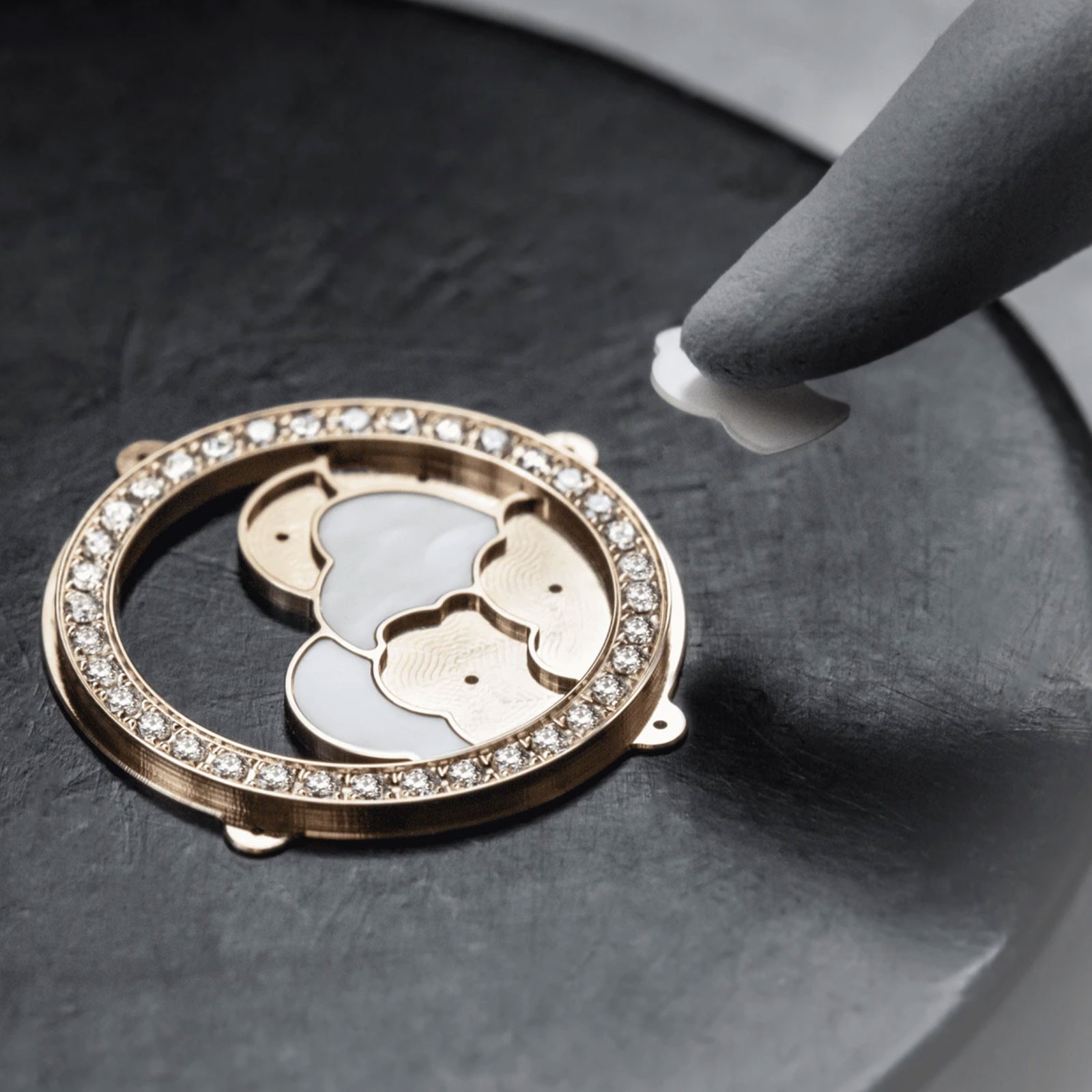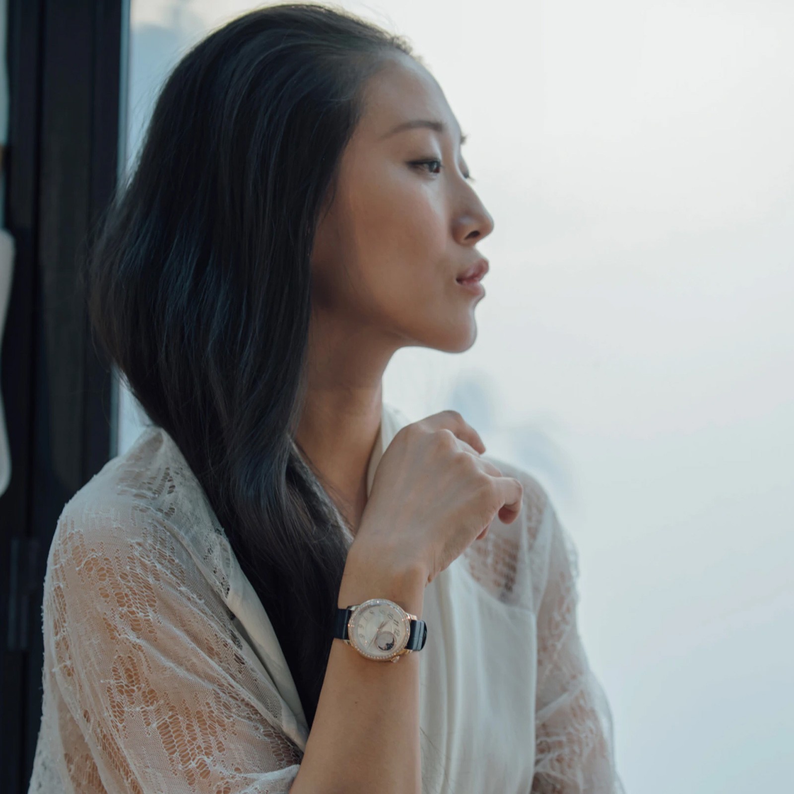 Égérie is a new collection entirely inspired by and dedicated to women; the coming together of Haute Couture and Haute Horlogerie, two worlds sharing the same passion for excellence and beauty. With such priceless sources of inspiration, a timepiece from the Égérie collection will inspire you to make each moment more precious than the one before. This Vacheron Constantin Egerie Collection Ladies Watch 8005F/000R-B498 features a 38mm 18k pink gold case set with 50 round brilliant cut diamonds. A silver dial hosts a a cabochon moonstone between 1 and 2 o’clock, with no less than 36 round cut diamonds surrounding the moon and its starry sky, behind clouds of mother-of-pearl. This design, inspired by a tapestry technique, is made possible by a unique machine dating from 1904, the only one capable of traditionally reproducing such a complex design.