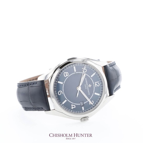 Founded in Geneva in 1755, the Maison Vacheron Constantin is the world's oldest continuously operating watch manufacturer. With more than 260 years experience, each time piece emboidies the the quest for excellence and the values cherished by Vacheron Constantin. This Vacheron Constantin Fiftysix Mens Watch 4600E/000A-B487 is inspired by a model dating back to 1956 - reference 6073. Featuring a 40mm stainless steel case, this timepiece has a reto-contemporary feel. The striking blue and Mississippiensis alligator leather strap contrats elegantly with the cool stainless steel case.