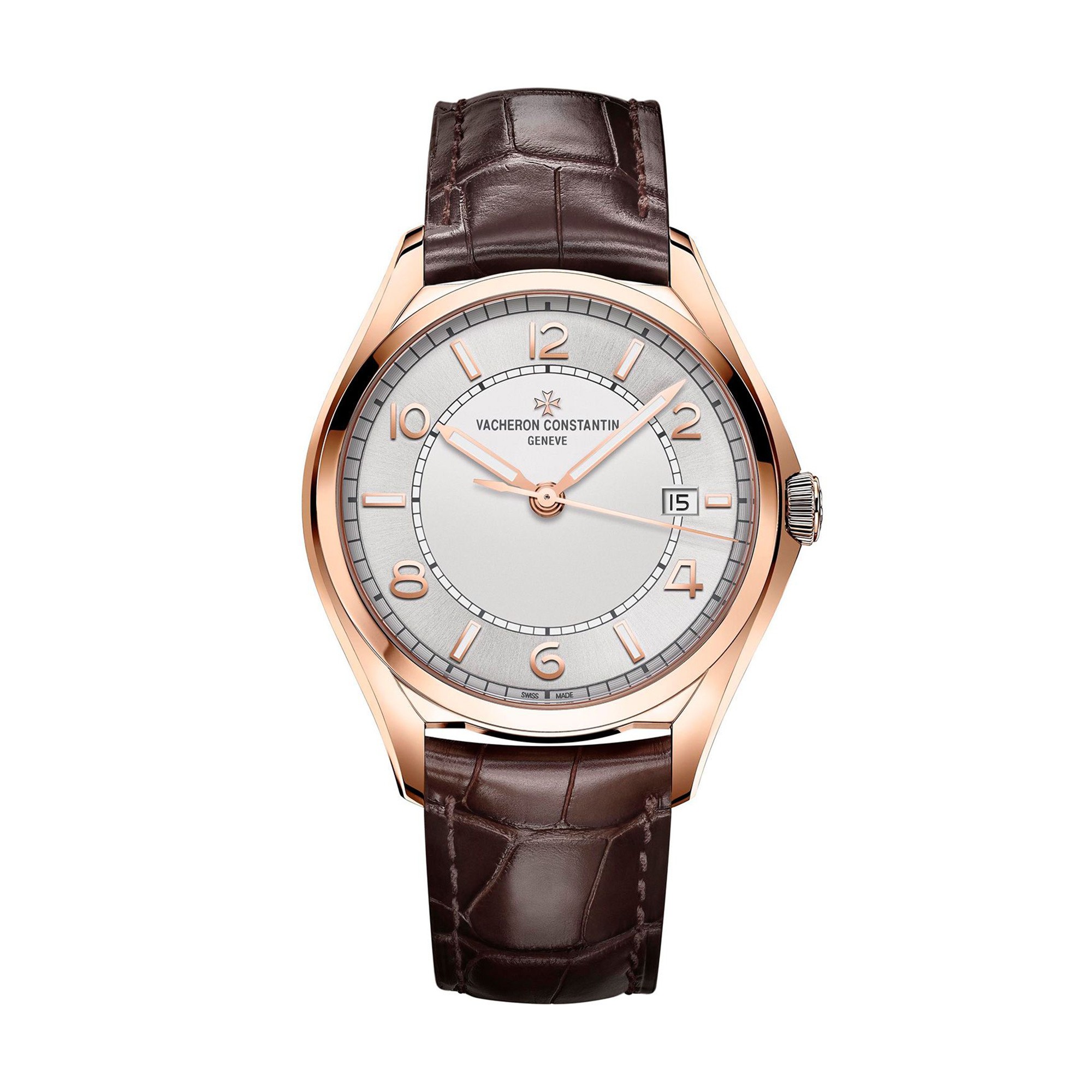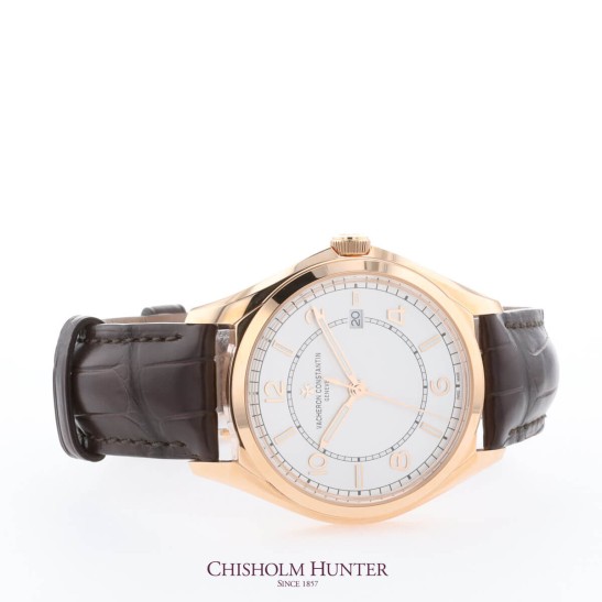 An iconic model dated by 1956 Vacheron Constantin. This collection indulges in lines composed of the combination between a classic dial and design of the case, expressing an elite cosmopolitan style. The reinterpreted models are noticeably inspired by the Maltese cross-shaped emblem which is also recognisable on the open worked pink gold oscillating weight. The Fifty-six Complete Calendar showcases a white dial with alternating even Arabic Numerical markers and the essential hands in a 18ct Rose Gold tone. The dial is detailed with the complication of the date function at the 3 o'clock position. Presented on a Mississipplensis dark brown alligator leather strap, the 40mm Rose Gold case hosts the dial, set beneath sapphire crystal glass for protection. Powered by a self-winding Calibre 1326 movement , this high precision Fifty-six Edition watch has a transparent case back and 48 hour power reserve which is exquisite in the technical components of this timepiece. This timepiece is water resistant to 30 metres. All Vacheron Constantin collections are presented with a 2-year international warranty.