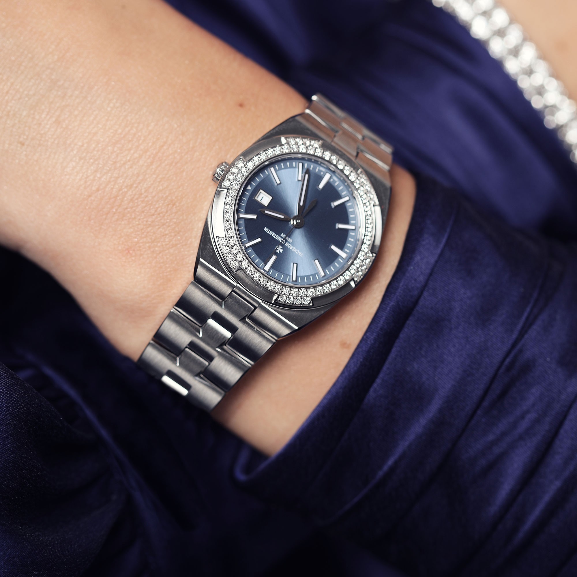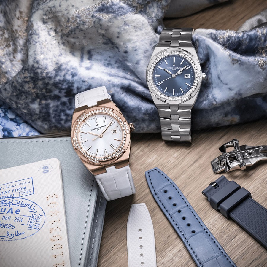 In constant pursuit of innovation, Vacheron Constantin emerged the essence of sports watches to create a watch that went beyond sport and guaranteed water resistance of up to 120 metres. In 2016, Vacheron Constantin, the Overseas collection was reinvented to embark on a new journey of rediscovery. The beautiful distinct blue Overseas dial is detailed with stainless steel hour markers and hands. The dial features a date function at the 3 o'clock position. Housed in a 33mm stainless steel diamond embellished bezel. The bezel features intricate embellished diamonds additional to the bezel to represent the Maltese Cross that is signature to the Vacheron brand. Presented on a clean cut stainless steel bracelet with a deployant buckle. This watch can be adjusted to have a blue leather strap or blue rubber strap. The Overseas quartz is home to high precision quartz movement for accurate and everlasting timekeeping. All Vacheron watches come with a 2-year international warranty and branded presentation packaging.