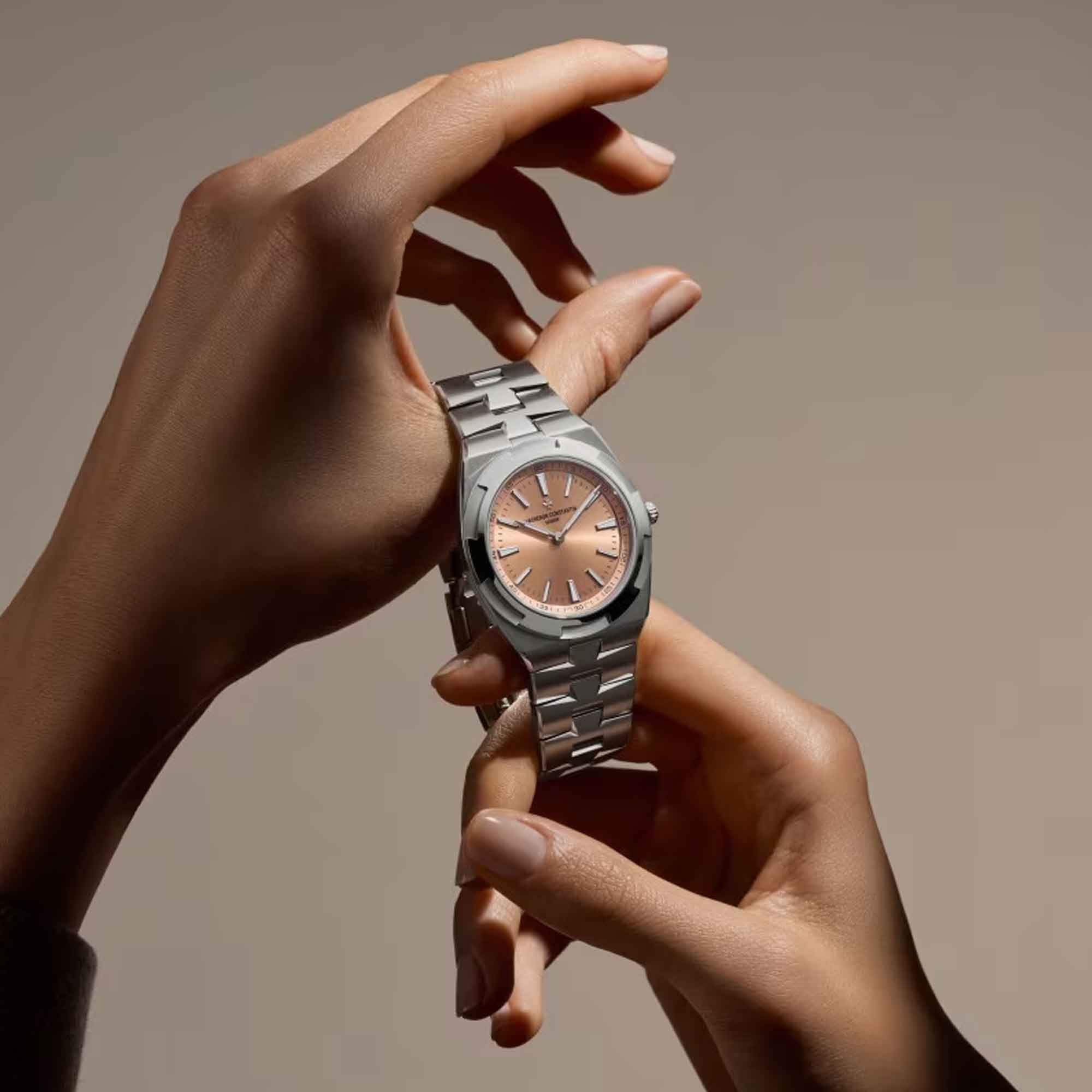 The Overseas self-Winding ultra-thin embodies excellence and exclusivity. This limited edition of 255 pieces is the very first Overseas entirely crafted in 950 platinum. Its 39.5mm case, of rare elegance, houses a salmon-colored dial with the collection's emblematic finishes, a shade reserved for this platinum version.