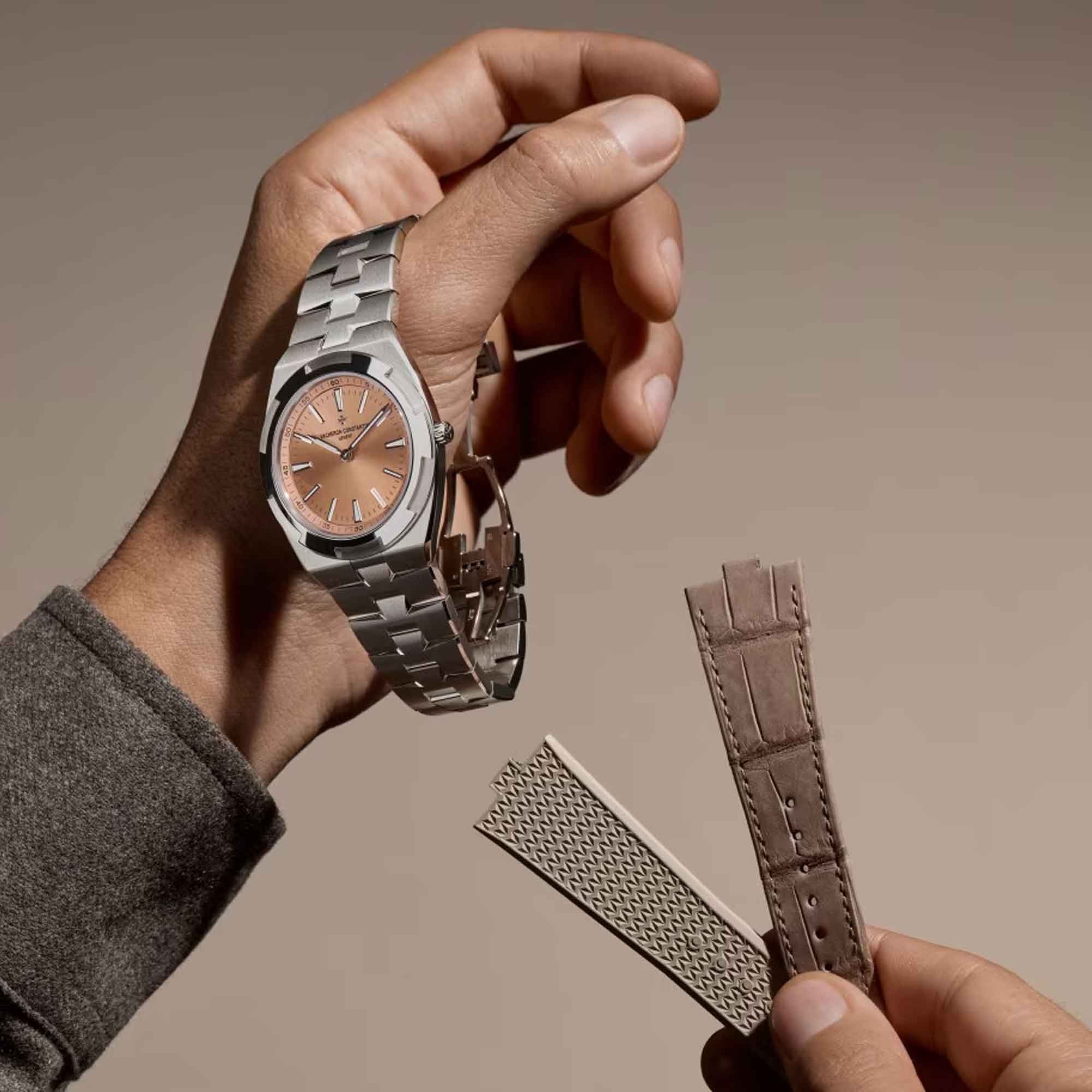 Powered by the new manufacture Calibre 2550, an ultra-thin movement and the Maison's first platinum micro-rotor, it combines performance and refinement. True to the Overseas spirit, the watch is customizable thanks to its three easily interchangeable straps – one leather, one rubber and one 950 platinum.