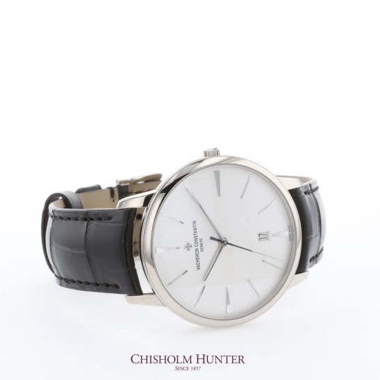 Circular and classic; the Patrimony collection is the epitome of minimalism. It is distinct as a collection through its slender cases showcasing a grandeur inspired by 1950s Vacheron Constantin models. Showcasing a white dial, this Patrimony timepiece has fine detailing of white-gold tone hands and hour markers. As an additional complication the dial features a date window at the 6 o'clock position. Protected by sapphire crystal glass, the dial is housed by a stunning 36mm 18ct White Gold case. Presented on a Mississipplensis black alligator leather strap; finished with the distinct Maltese Cross detailing on the fastening of the trillion buckle. Power by a self-winding movement Calibre 2450 Q6/3 movement, this high precision timepiece provides a 40-hour power reserve and is water resistant to 30 metres. All Vacheron Constantin collections are presented with a 2-year international warranty.