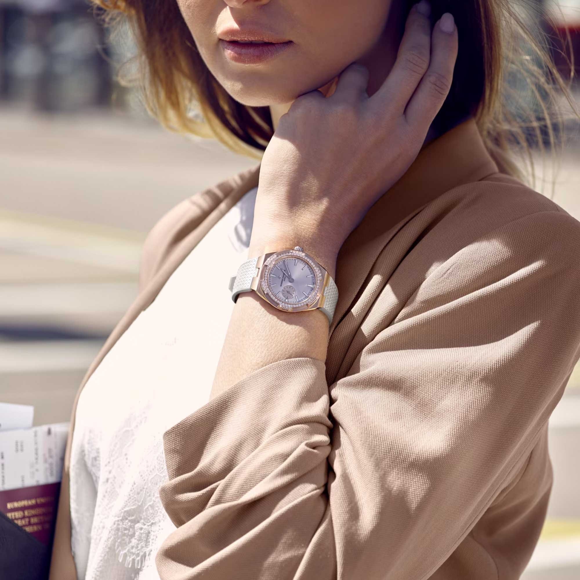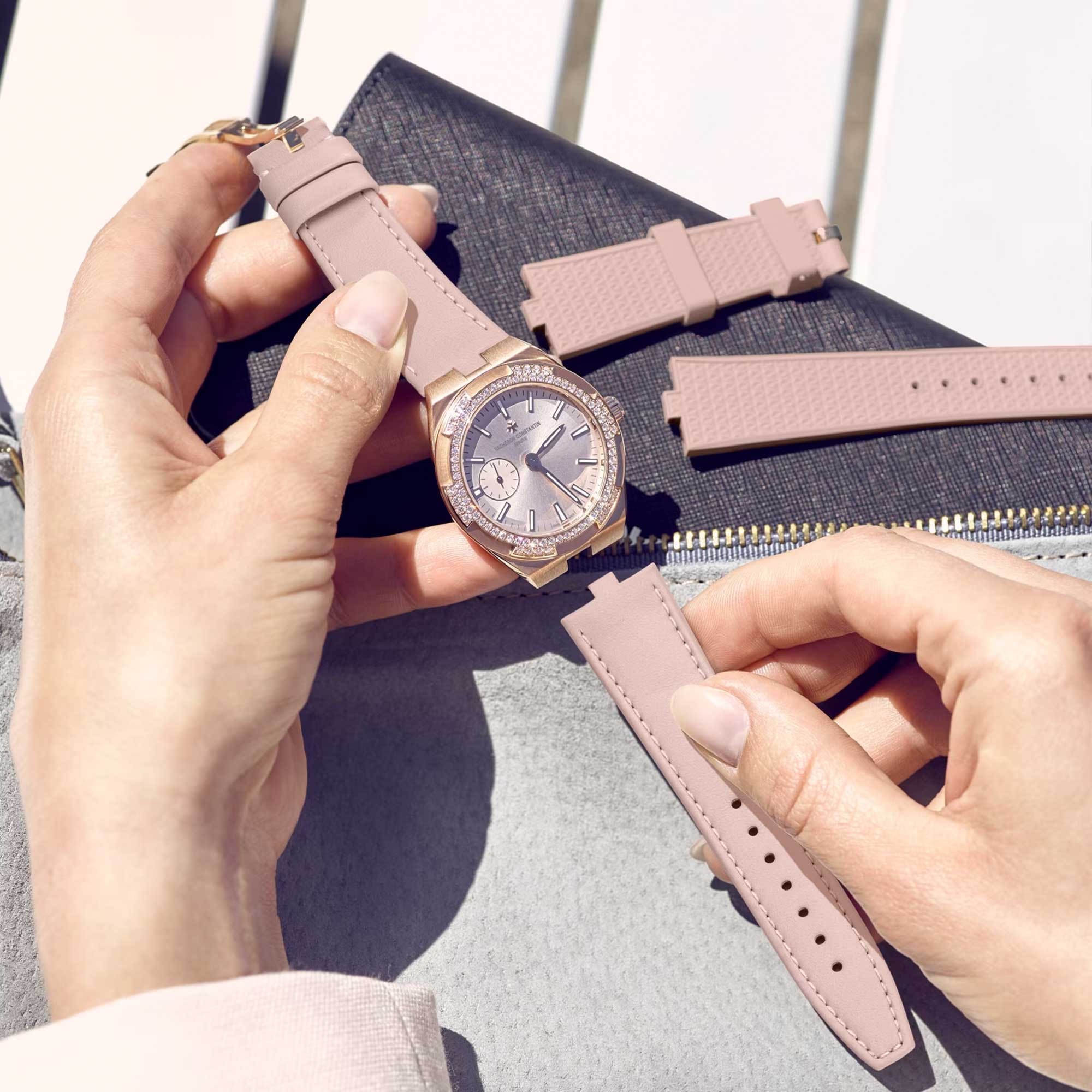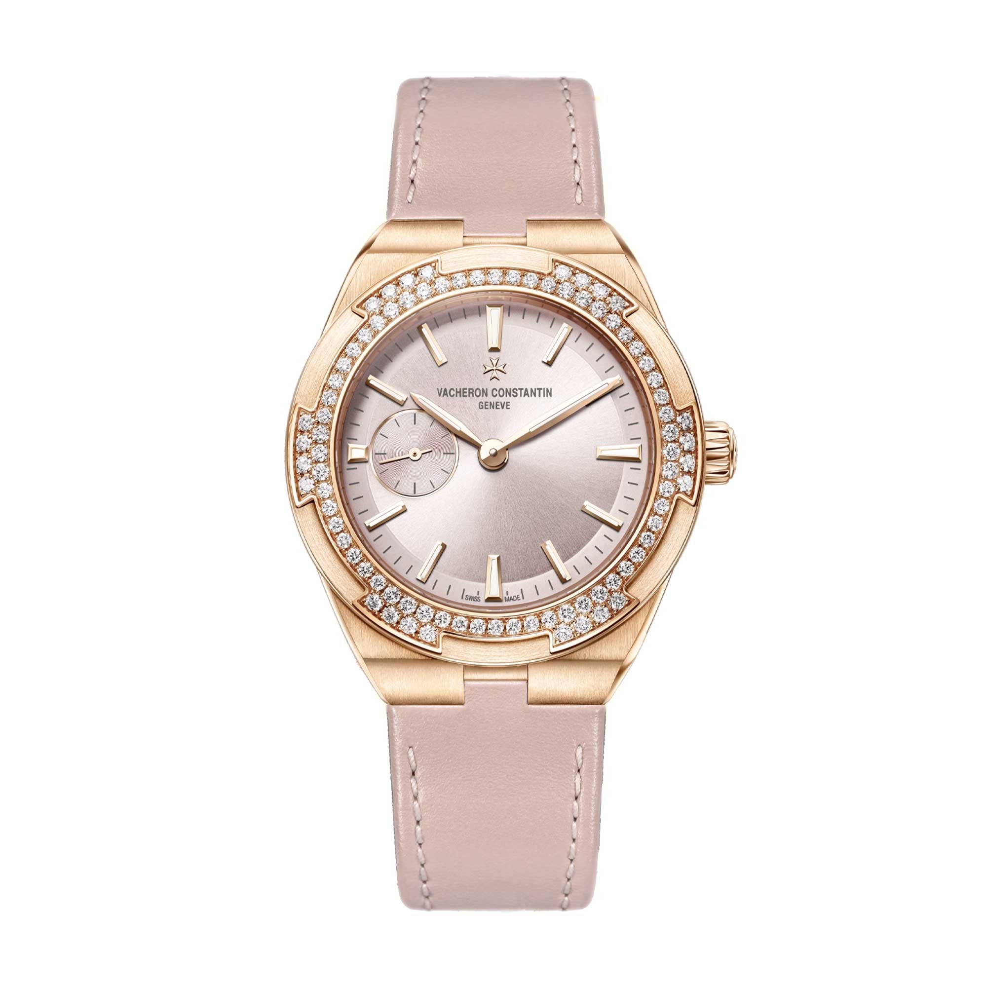 Distinguished by its decorative dial, the Vacheron Overseas ladies’ watch is a sensational timepiece to be cherished forever. Femininity fused with the most delicate watch craftsmanship, the 18ct rose gold 37mm case is set within the beige-pink dial that features the iconic Maltese cross. An array of 84 round-cut diamonds surrounds the dial to create a genuinely sparkling display. Adjust the interchangeable straps (leather and rubber) thanks to the clasp closure to suit your preference. Discover the Vacheron Constantin collections we have to offer from Chisholm Hunter today. Your Vacheron Constantin watch awaits.